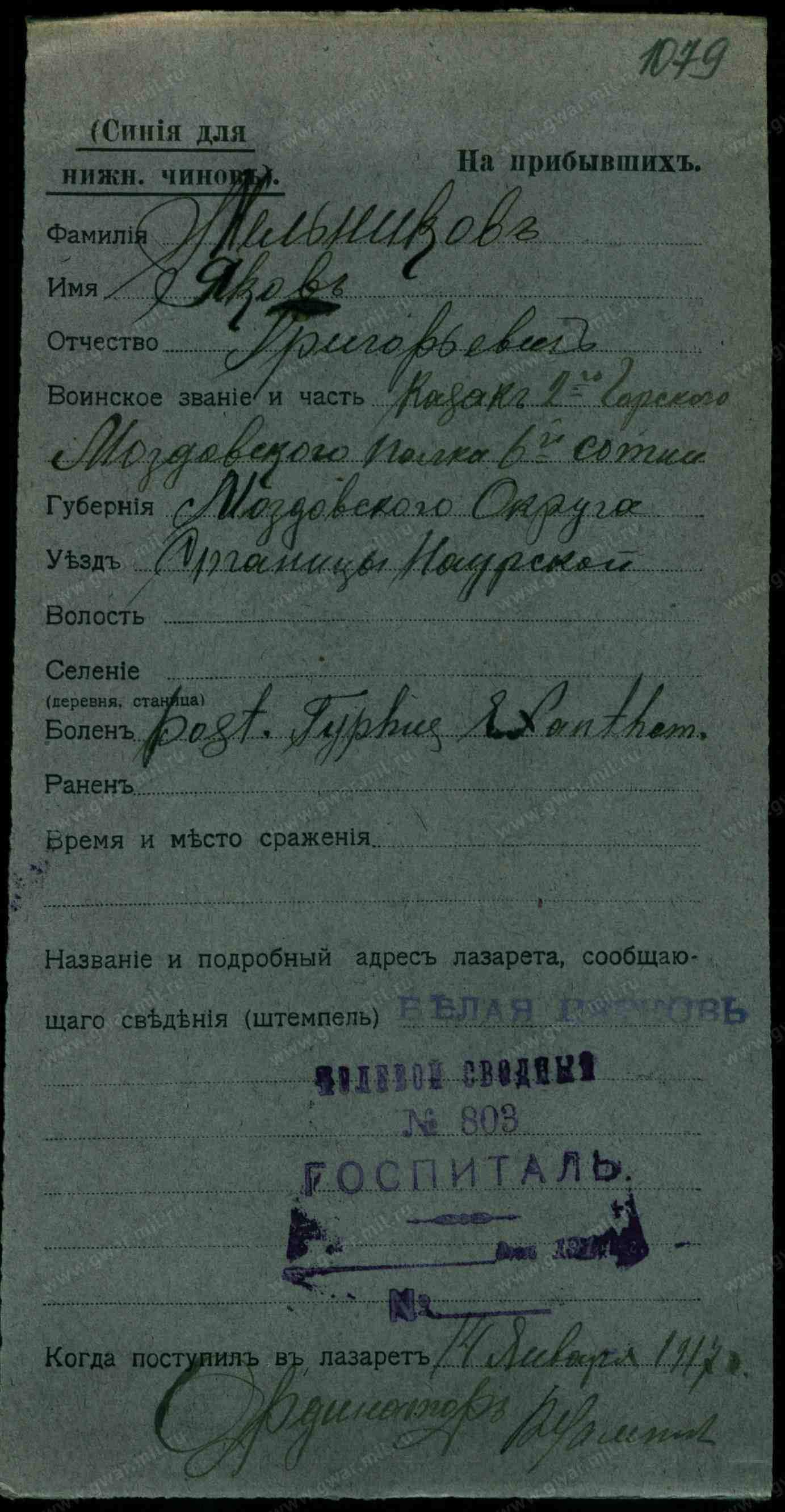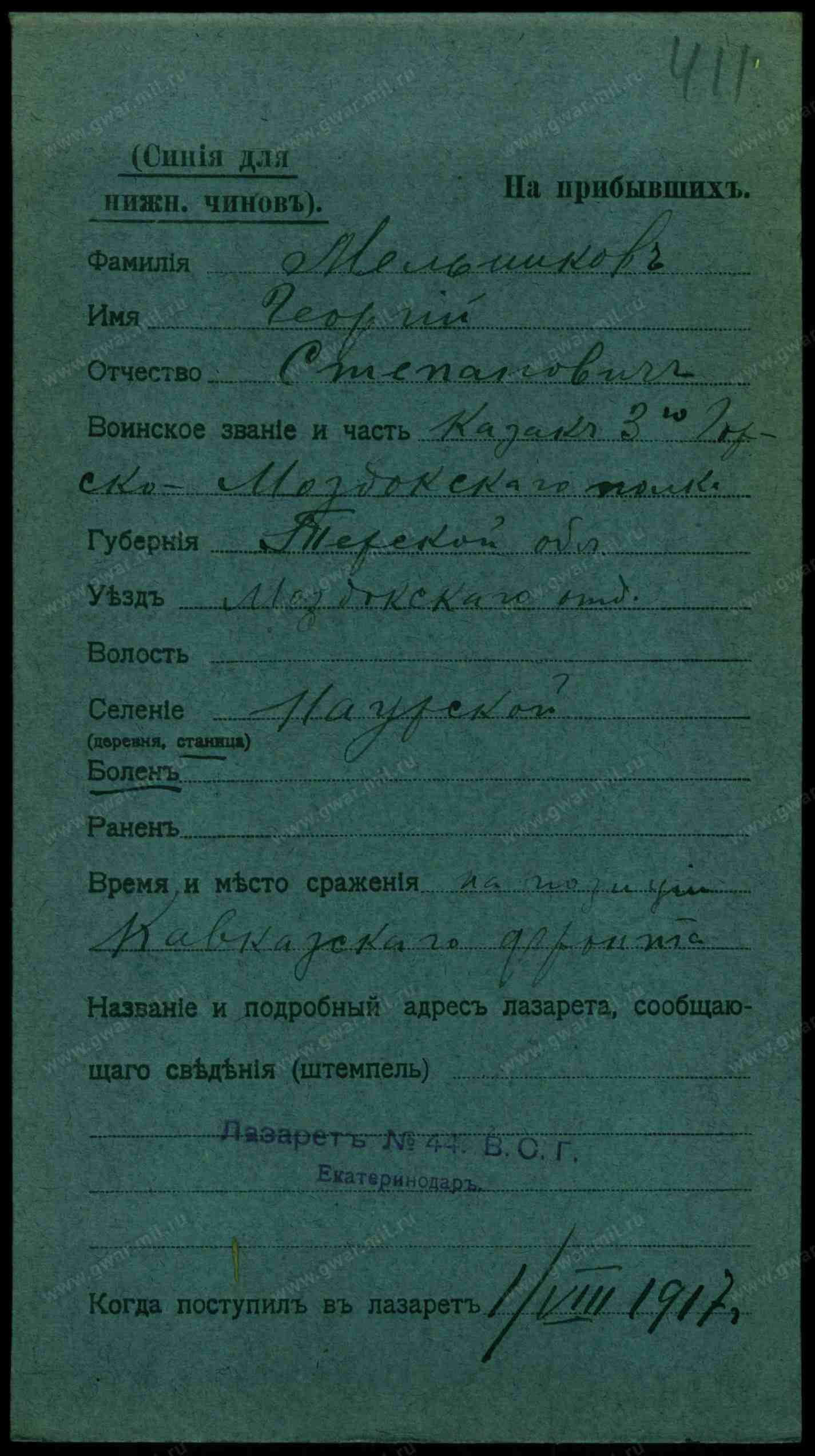 Лейтенант тех. сл., 23.02.1915 Чечено-Ингушская АССР, Наурский р-н, станица Наурская. УПК