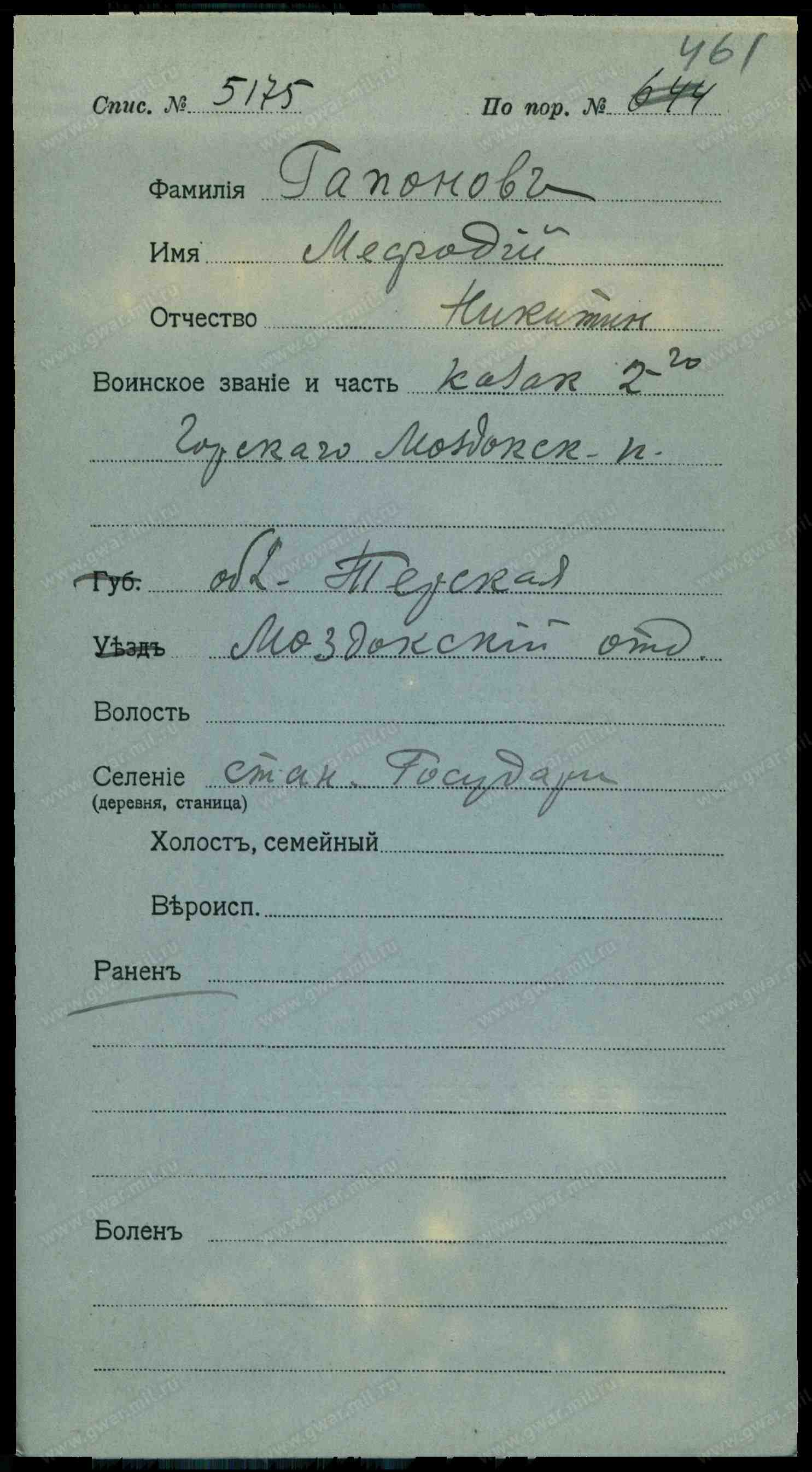 Горско-Моздокского полкового округа: