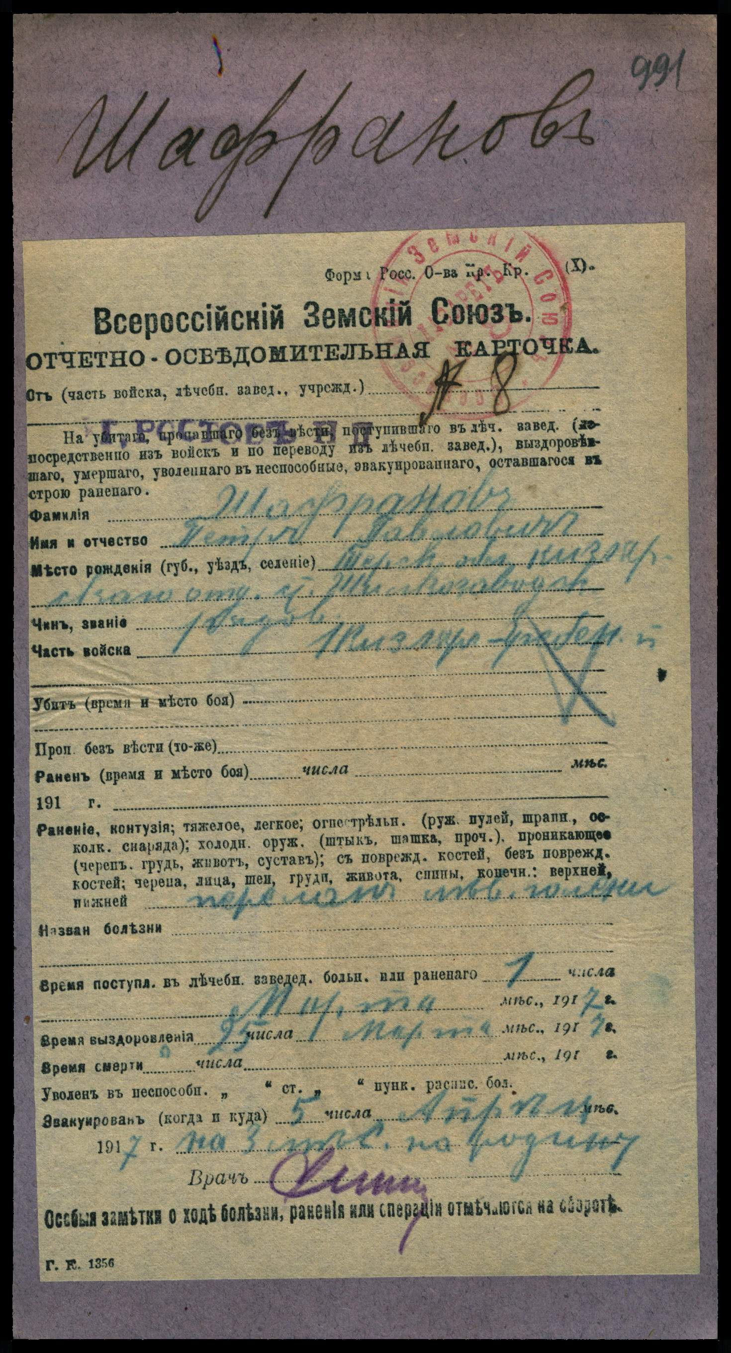 Фонд Картотека бюро учета потерь в Первой мировой войне (офицеров и солдат)