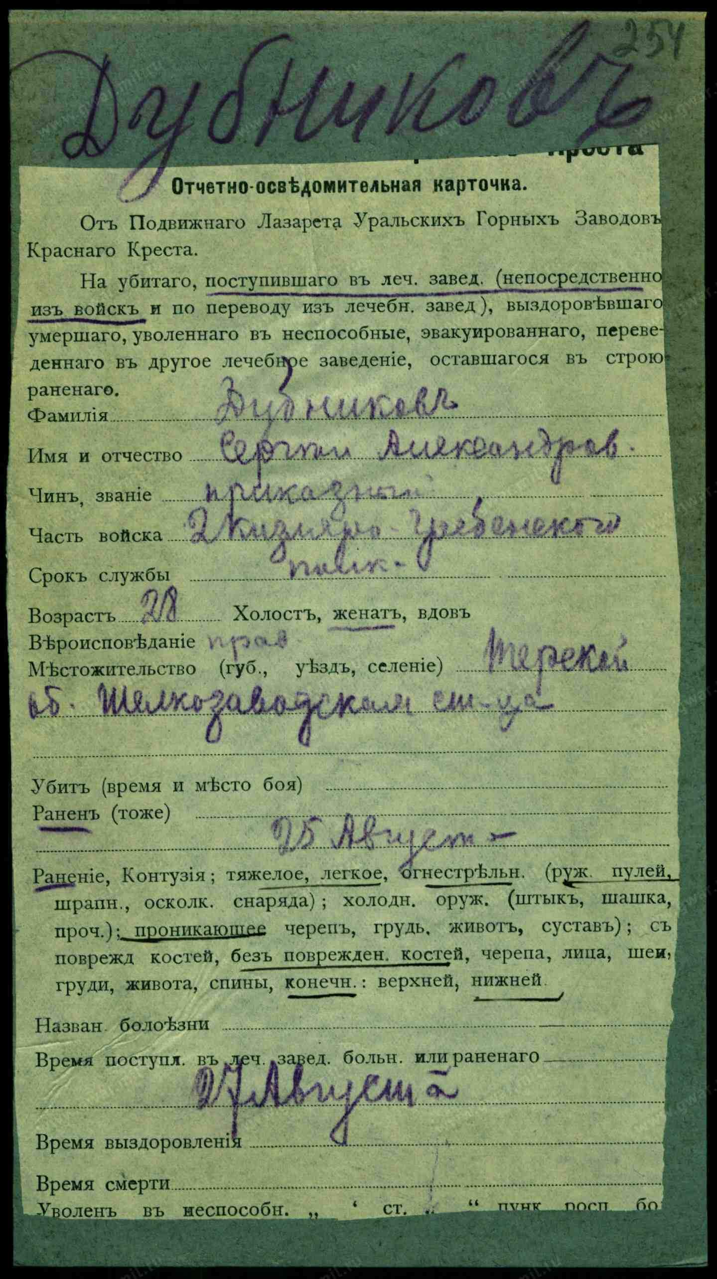 Фонд Картотека бюро учета потерь в Первой мировой войне (офицеров и солдат)