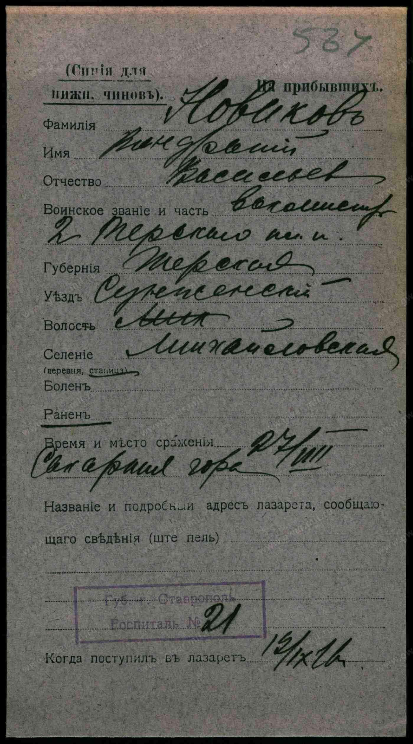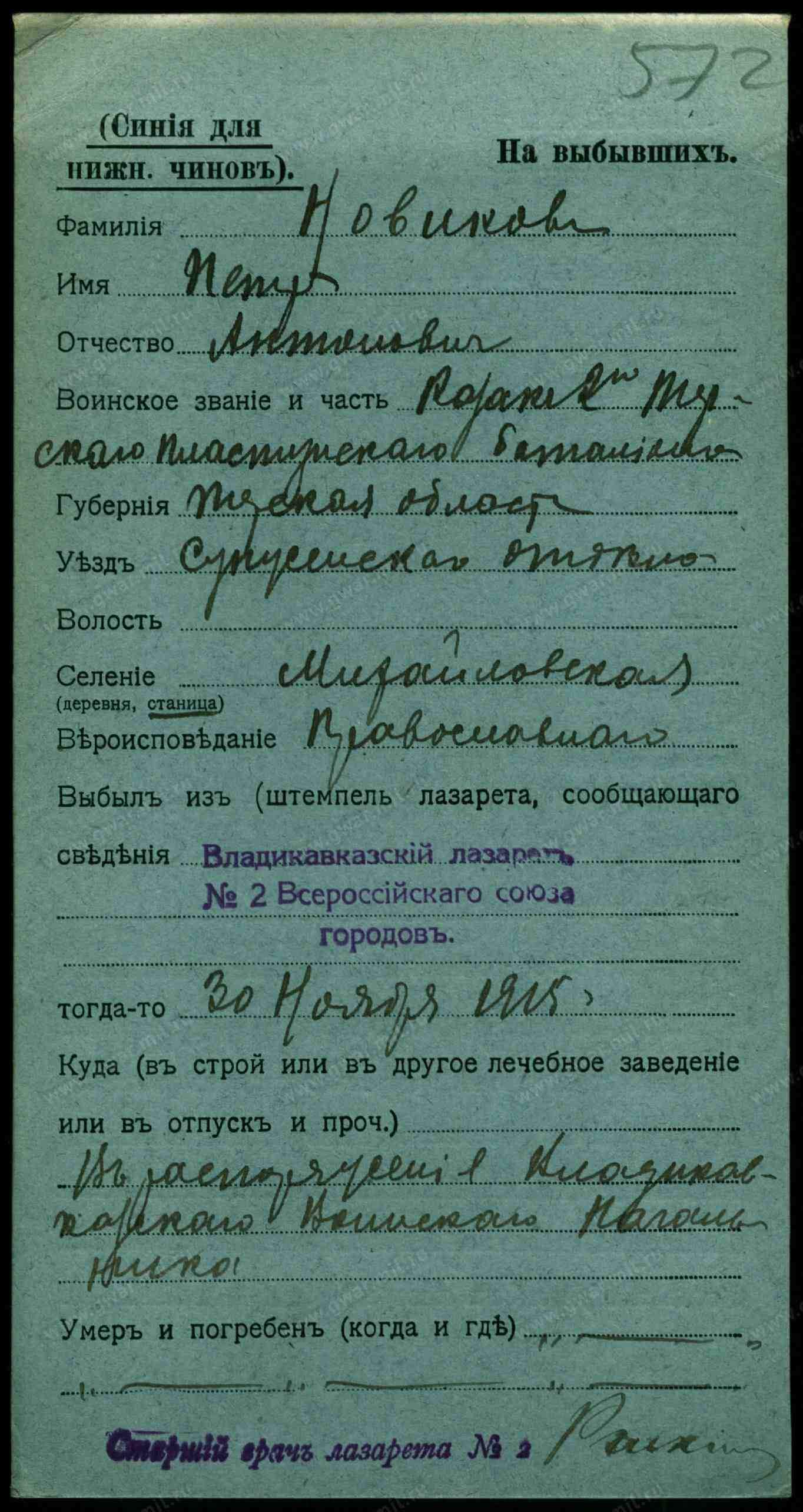 Увольняется по болезни от должности атамана ст. Михайловской, Сунженского отдела урядник Кирилл Коновалов, утверждается урядник Ефим Новиков