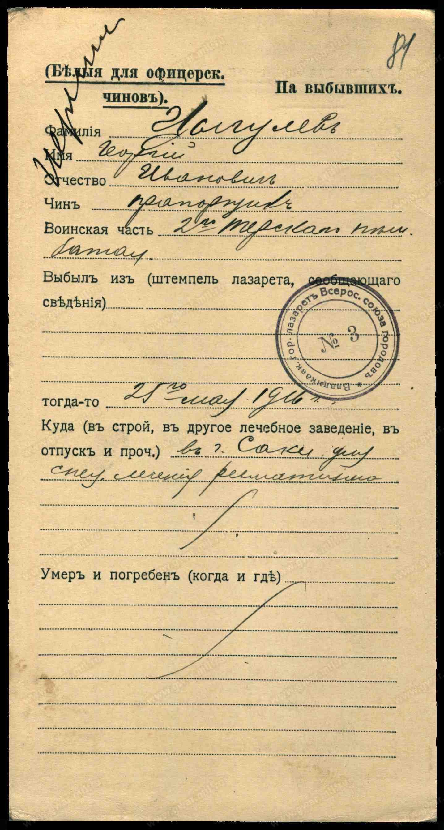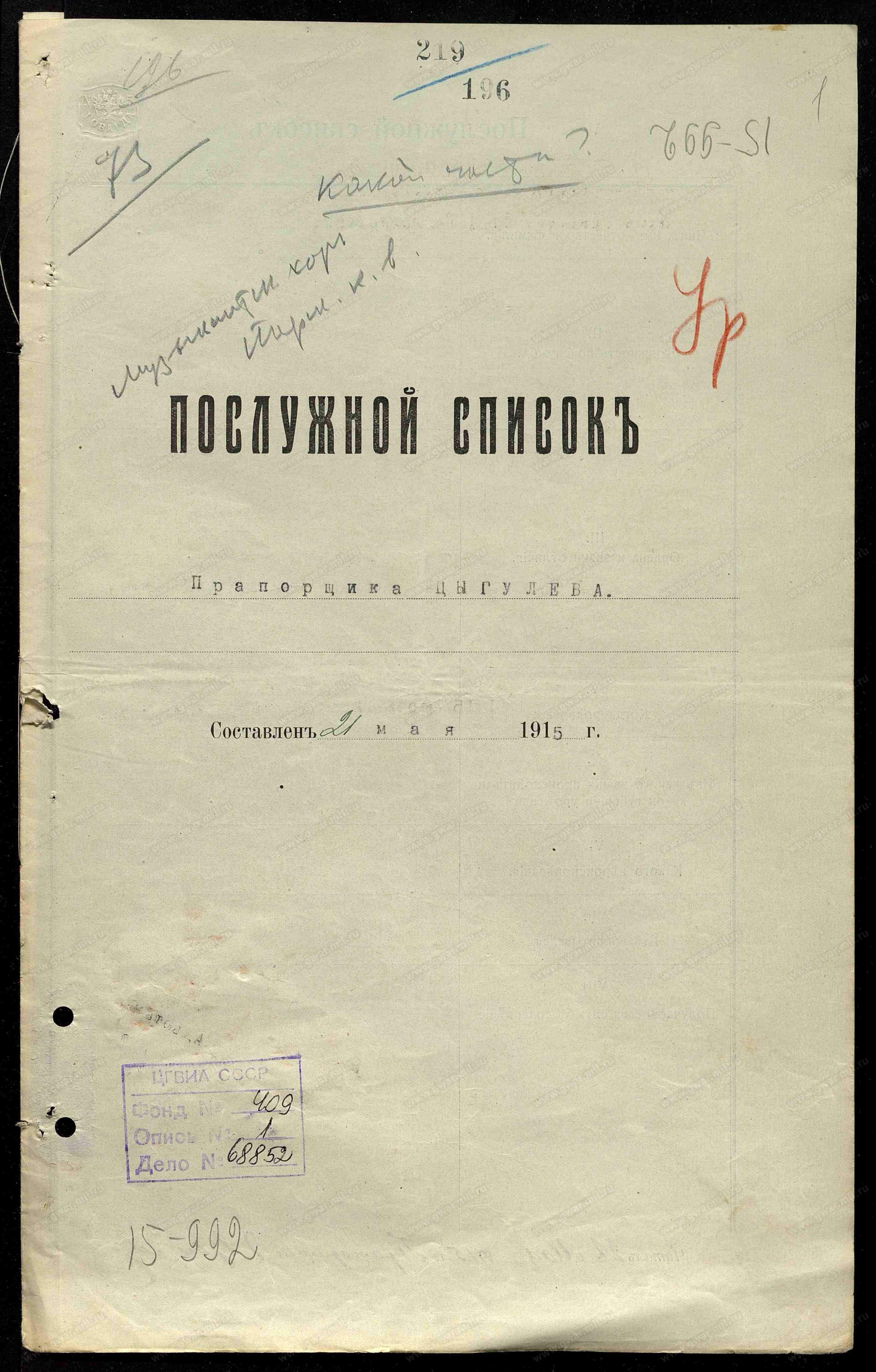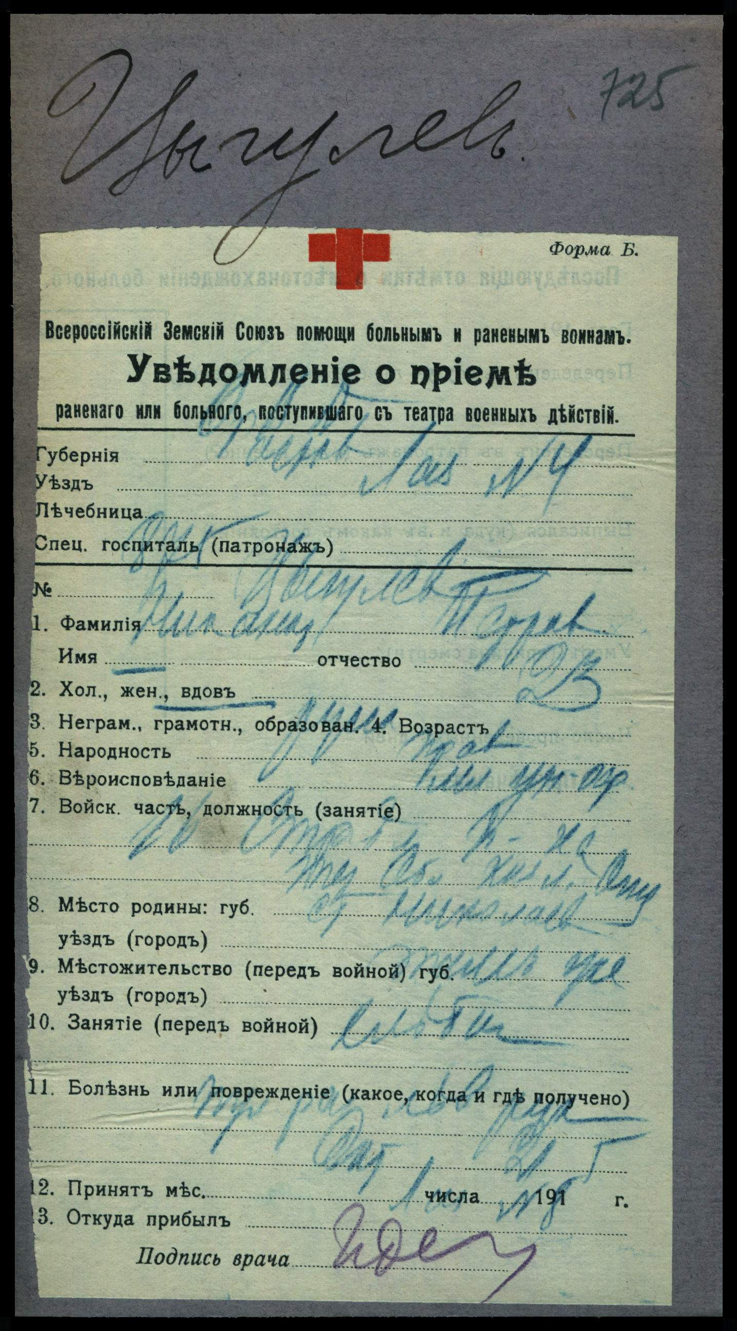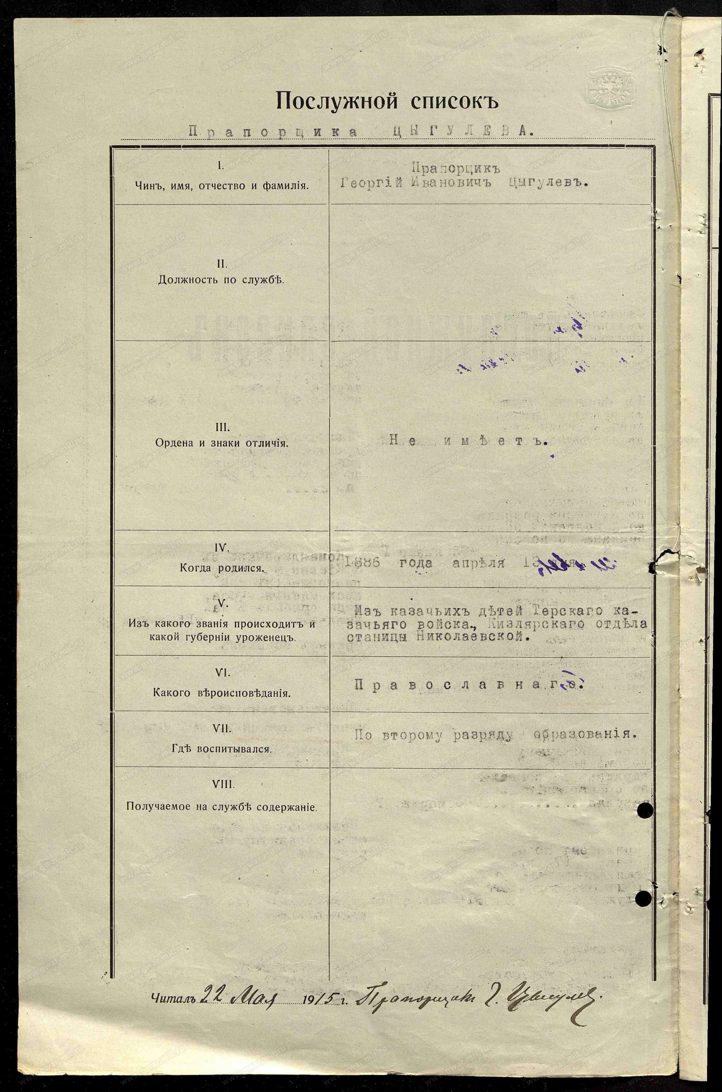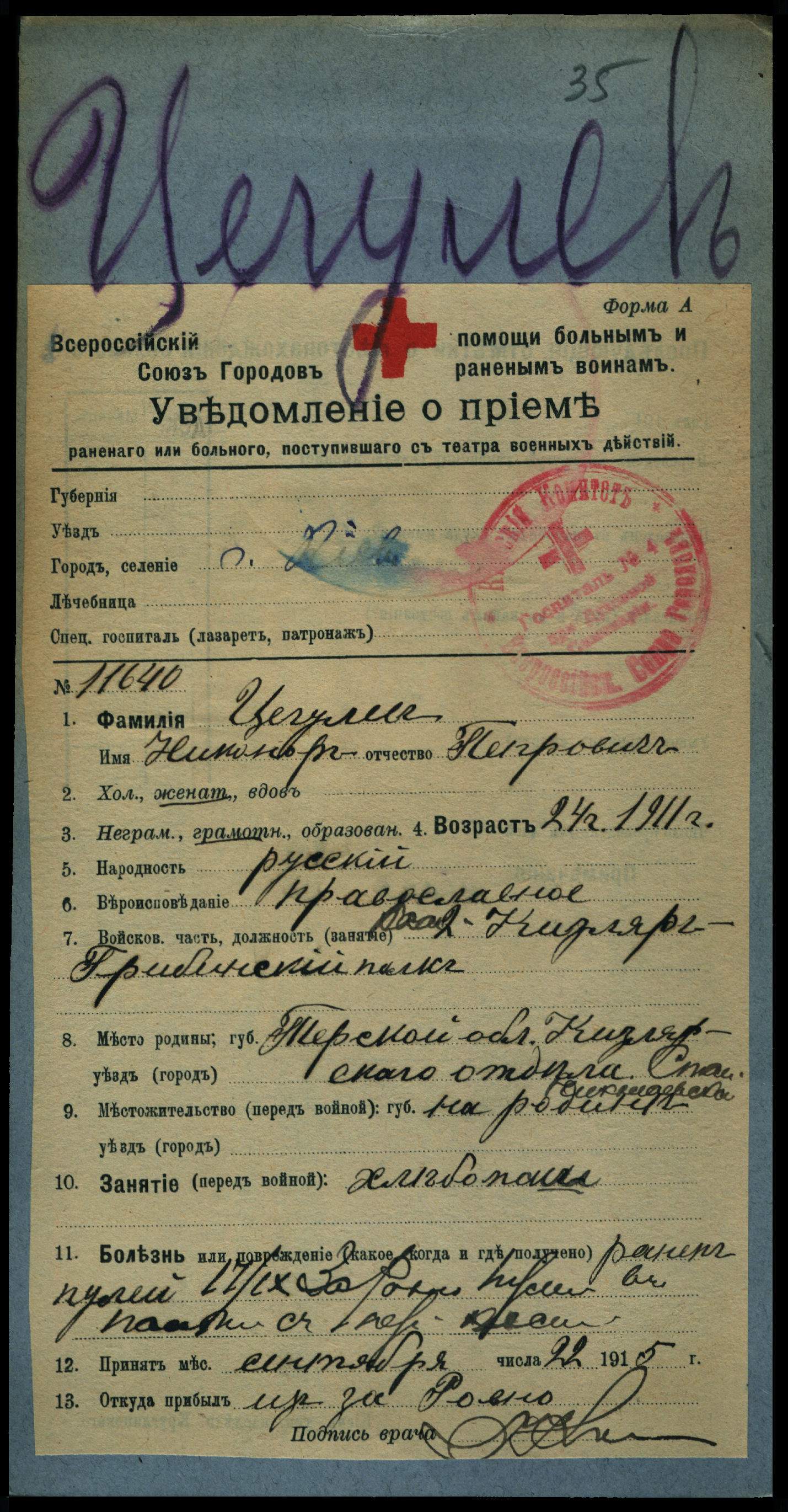 5. Цыгулев Николай Павлов, дядя, 65 лет, казак, родился в Харьковской губ., Купян. уезда, приписан здесь, прав., родной язык русский, неграмотный, призреваемый.