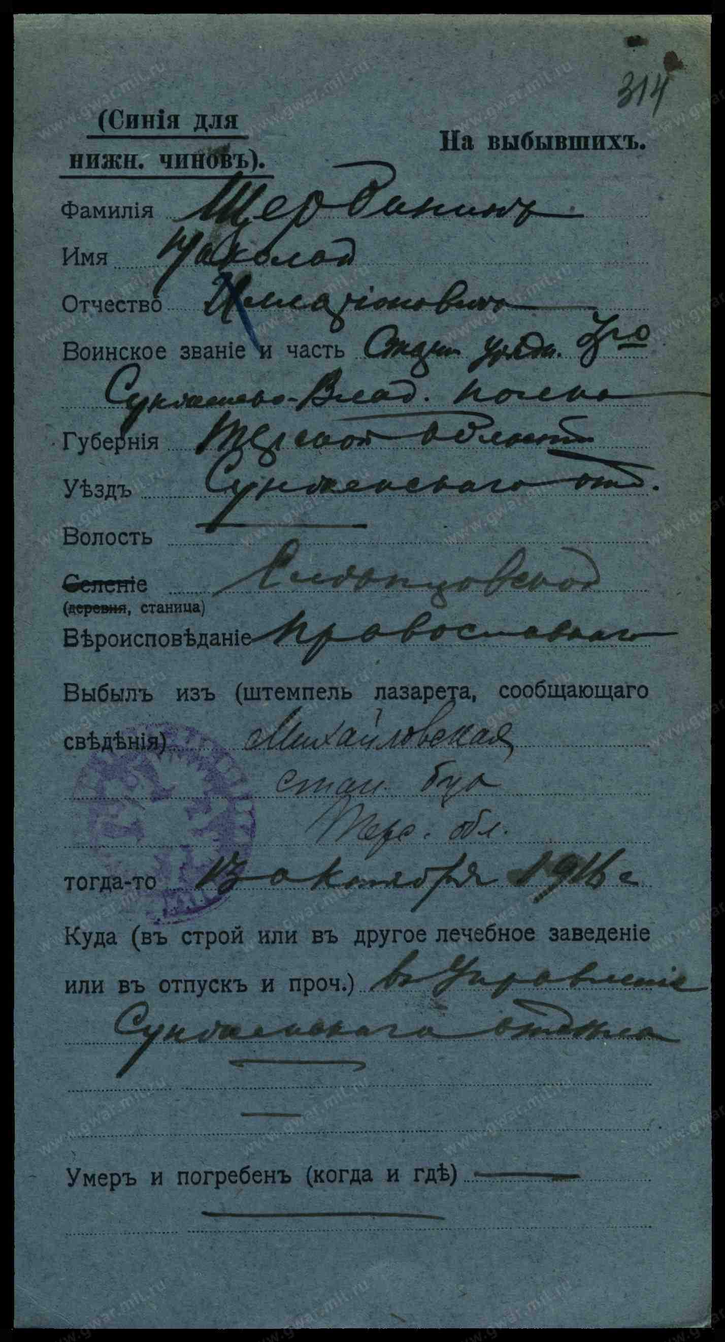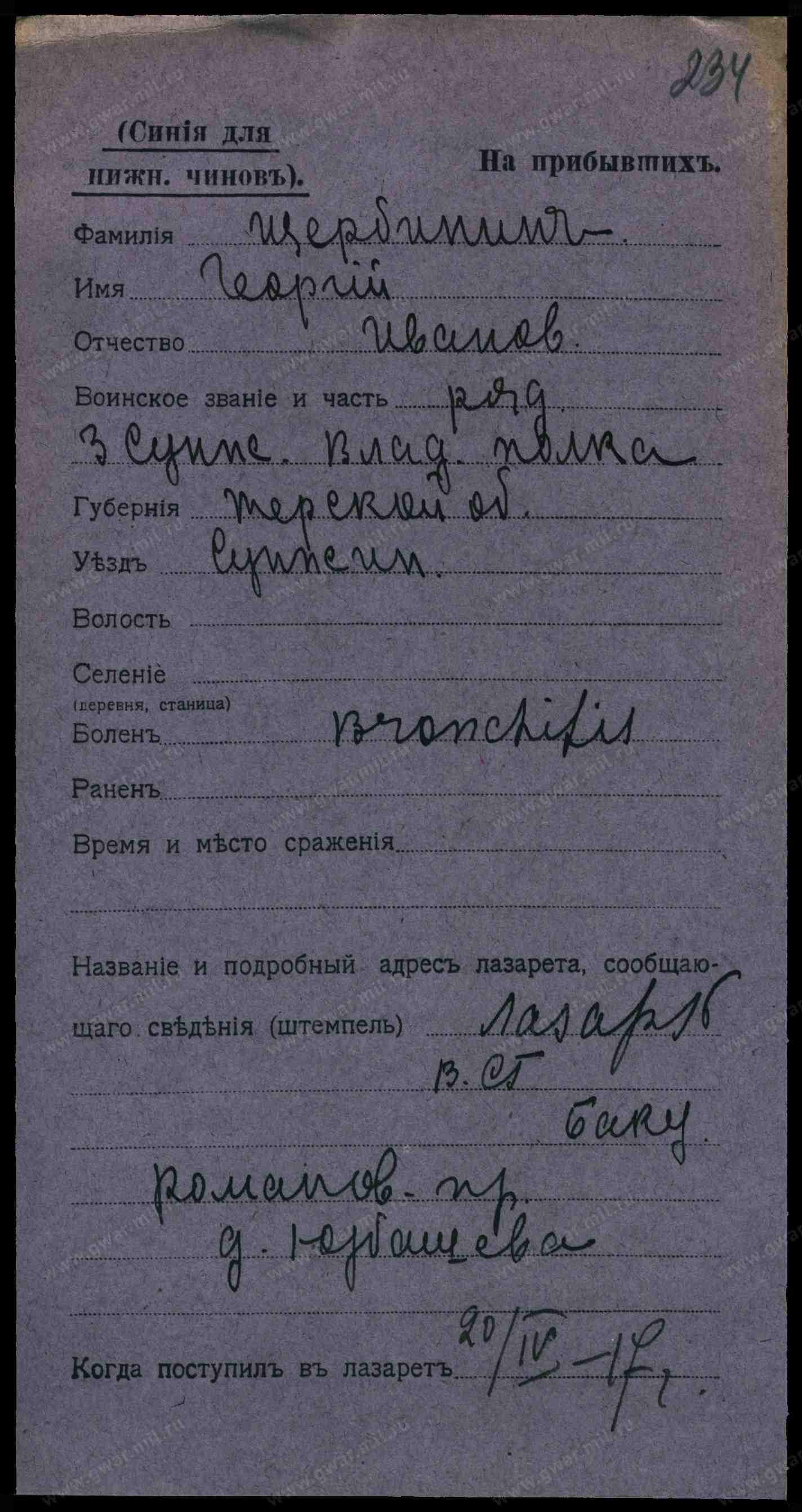 Старшина __.__.1918 Чечено-Ингушская АССР, Грозненская обл., Сунженский р-н, Орджоникидзевск. Сводная картотека