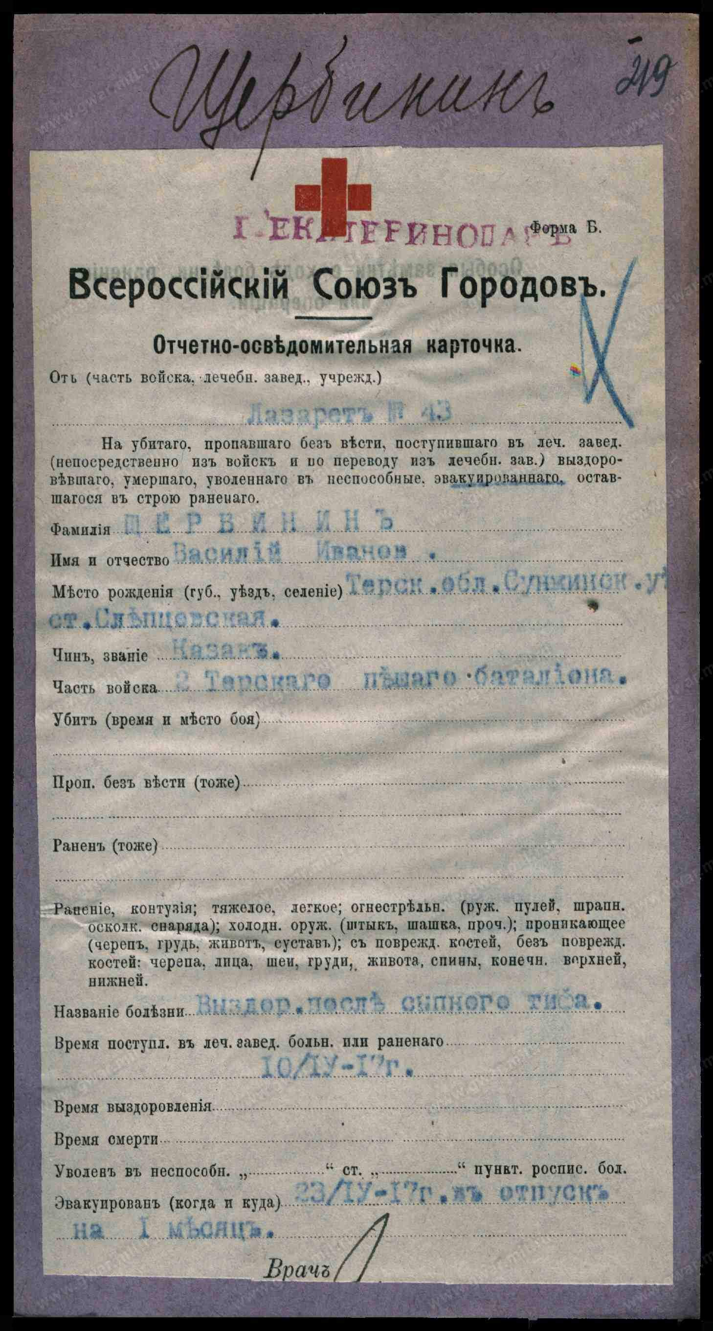 — 1-й Сунженский казачий полк объявляет, что отставной казак станицы Слепцовской, Федор Выродов, 18-го Мая самовольно отлучился в г. Владикавказ, для продажи пары принадлежащих ему быков, где, как видно из показания отставного казака Щербинина, — продал их, и ночевал вместе с Щербининым в доме Владикавказского мещанина Федора (фамилии не известно), пил с ним водку, затем, 21-го числа того же месяца, Выродов, зайдя к Щербинину на квартиру, взял свою сумку, неизвестно куда отправился и до сих пор из отлучки не прибыл. Бежавший Выродов примет следующих: росту выше среднего, глаза серые, лицо чистое, волосы на голове, бровях и учах темно-русые, 43 лет.
