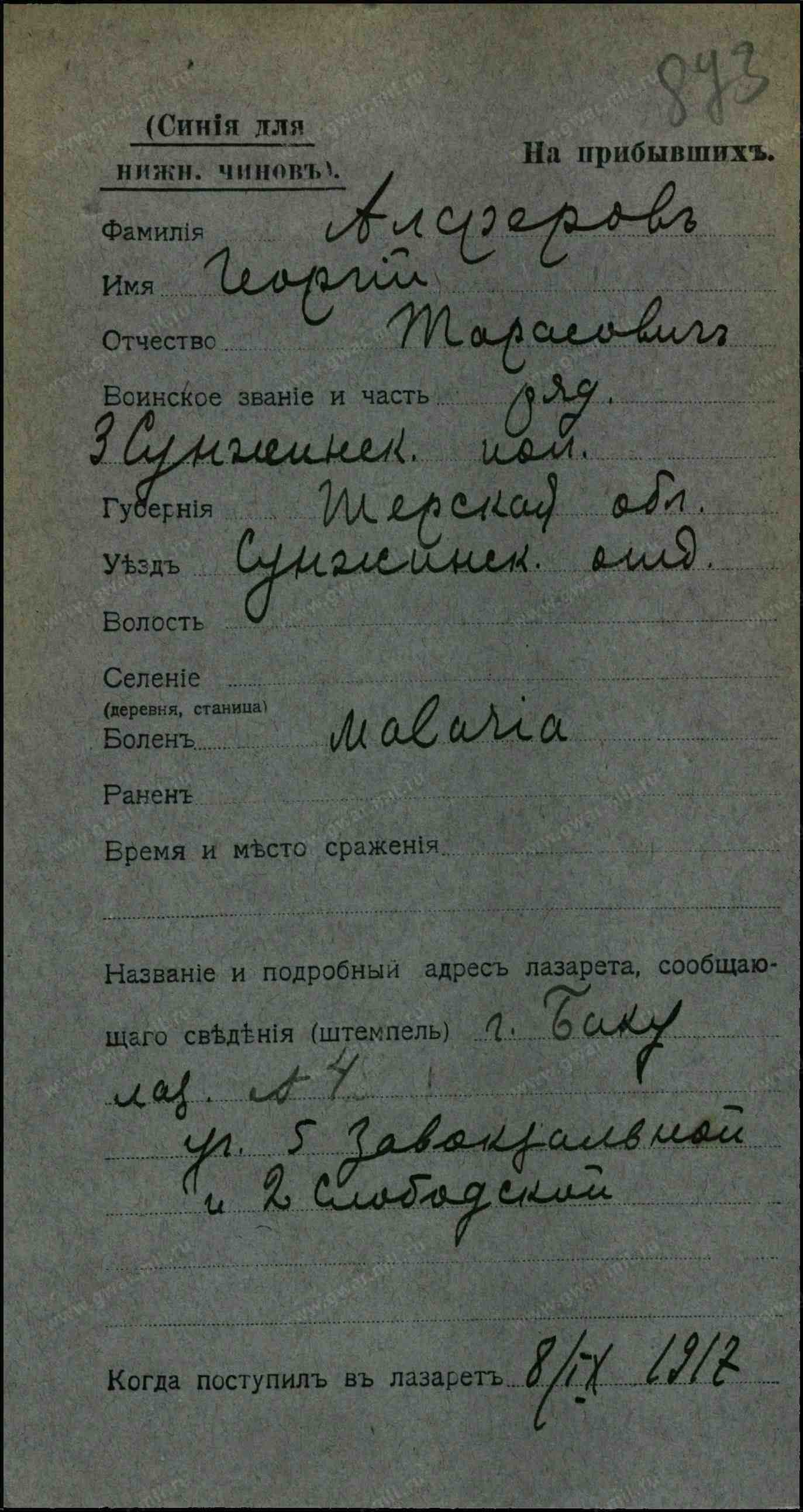 № Не указан. Алферов Алексей Яковлевич (1884) Казак.
