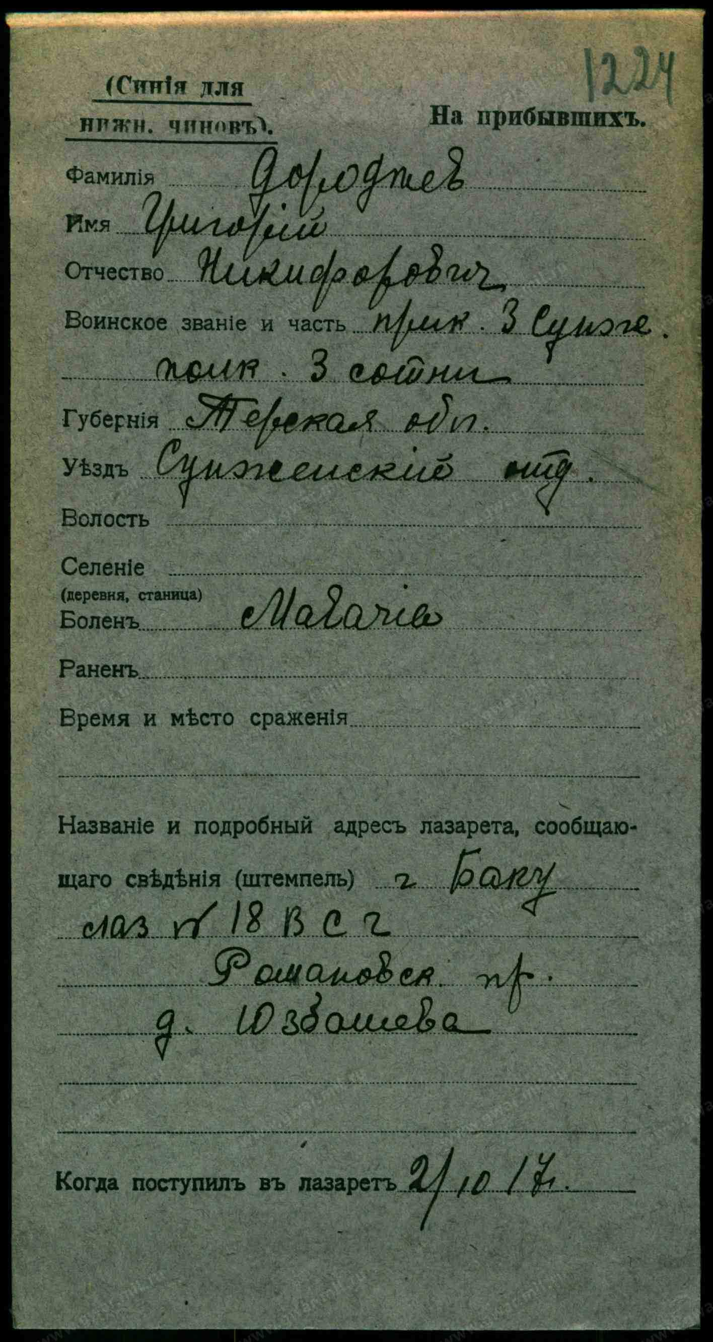 Майор __.__.1915 Грозненская обл., Сунженский р-н, станица Орджоникидзевская. Сводная картотека