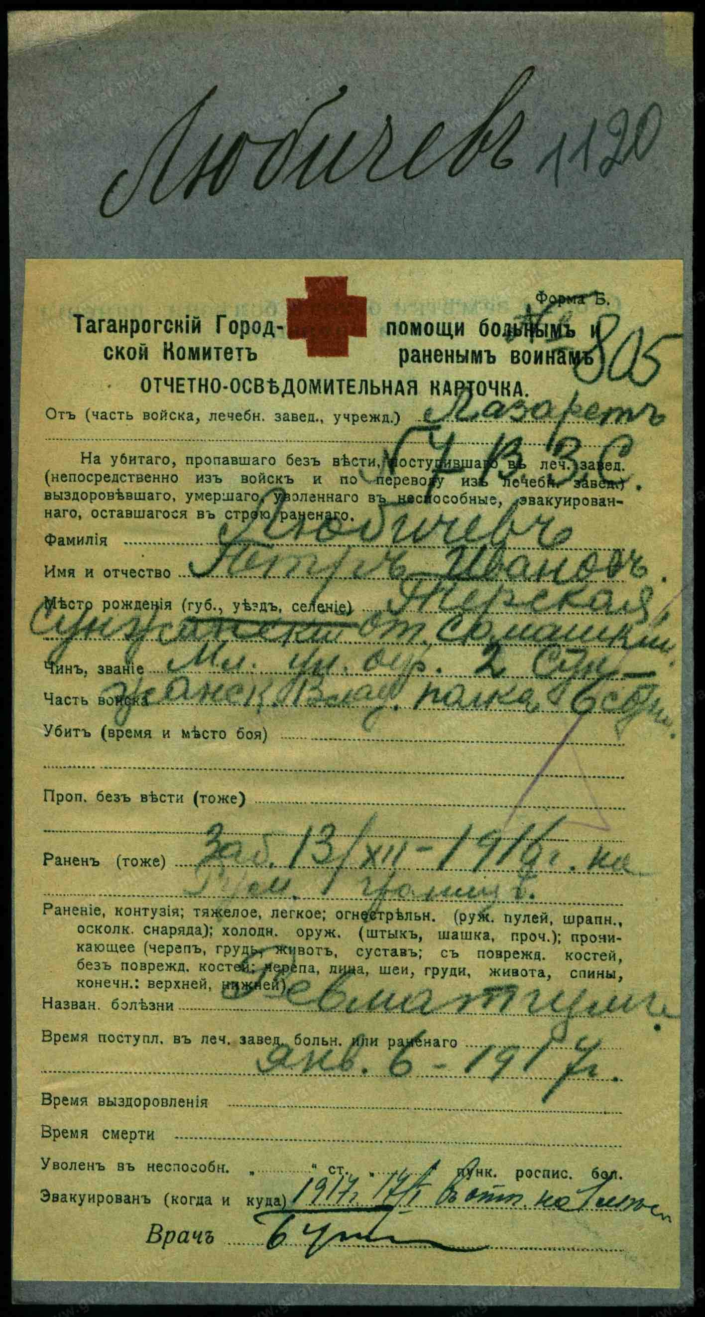 Фонд Картотека бюро учета потерь в Первой мировой войне (офицеров и солдат)
