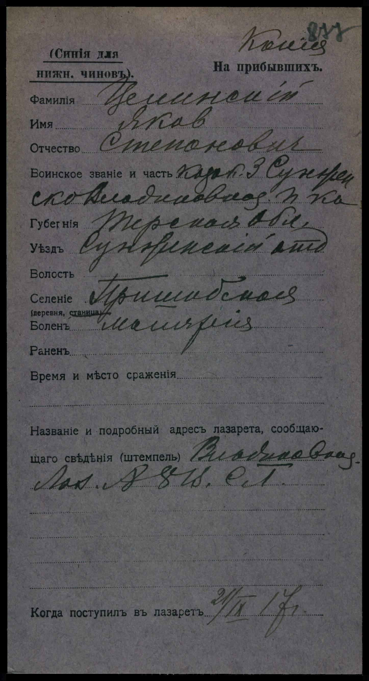 Фонд Картотека бюро учета потерь в Первой мировой войне (офицеров и солдат)