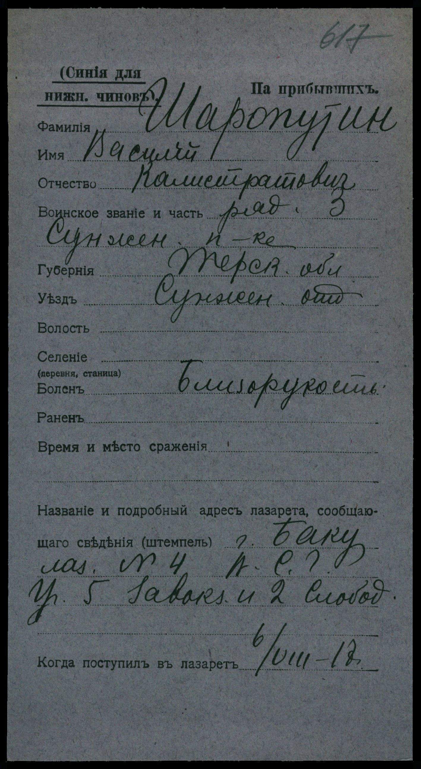 Каз. Яков Коллистратович Шарапутин, 1891г.р. (ст. Терской);