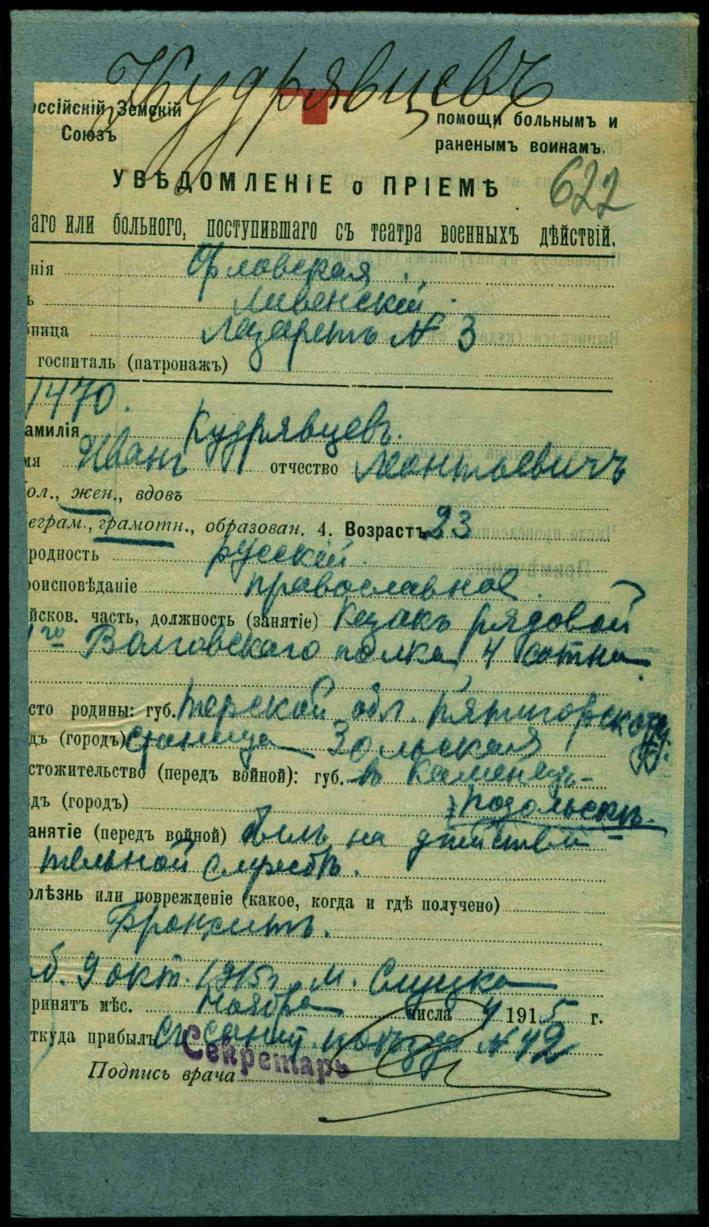 Фонд Картотека бюро учета потерь в Первой мировой войне (офицеров и солдат)