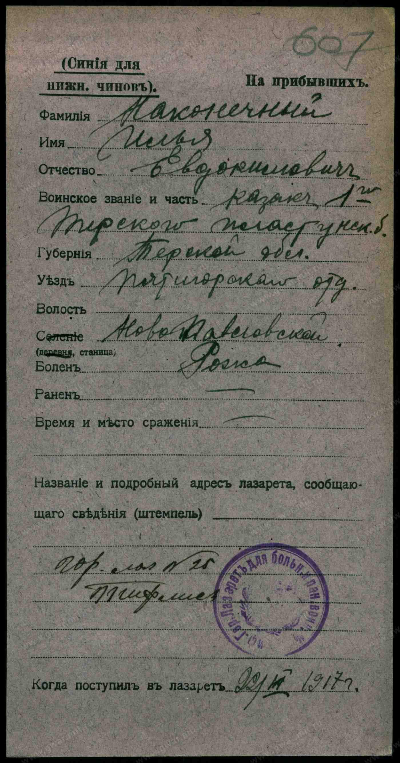 Список Георгиевских кавалеров 1-го Волгского ЕГО ИМПЕРАТОРСКОГО ВЫСОЧЕСТВА НАСЛЕДНИКА ЦЕСАРЕВИЧА полка Терского казачьего войска.