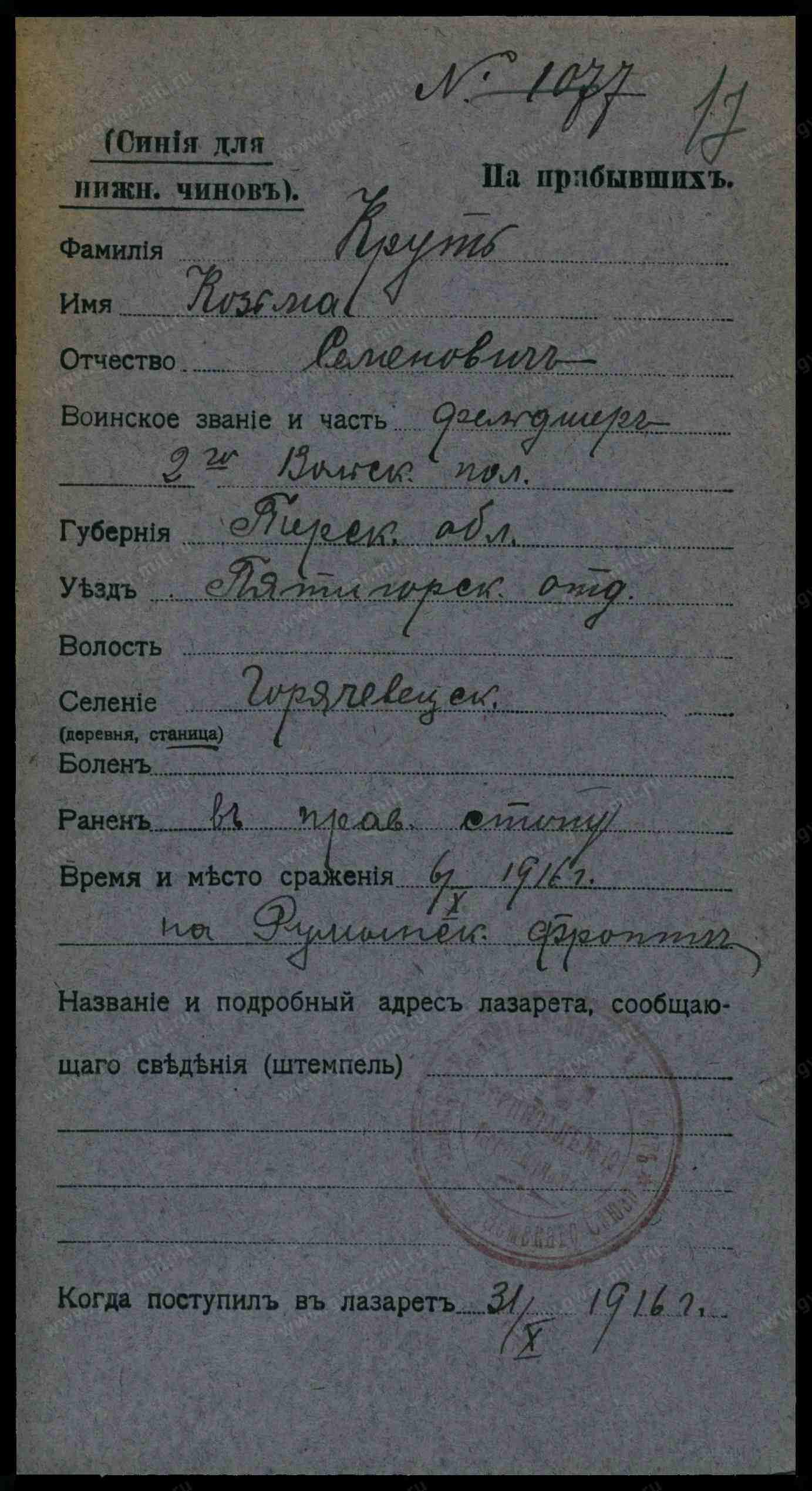Список Георгиевских кавалеров 1-го Волгского ЕГО ИМПЕРАТОРСКОГО ВЫСОЧЕСТВА НАСЛЕДНИКА ЦЕСАРЕВИЧА полка Терского казачьего войска.