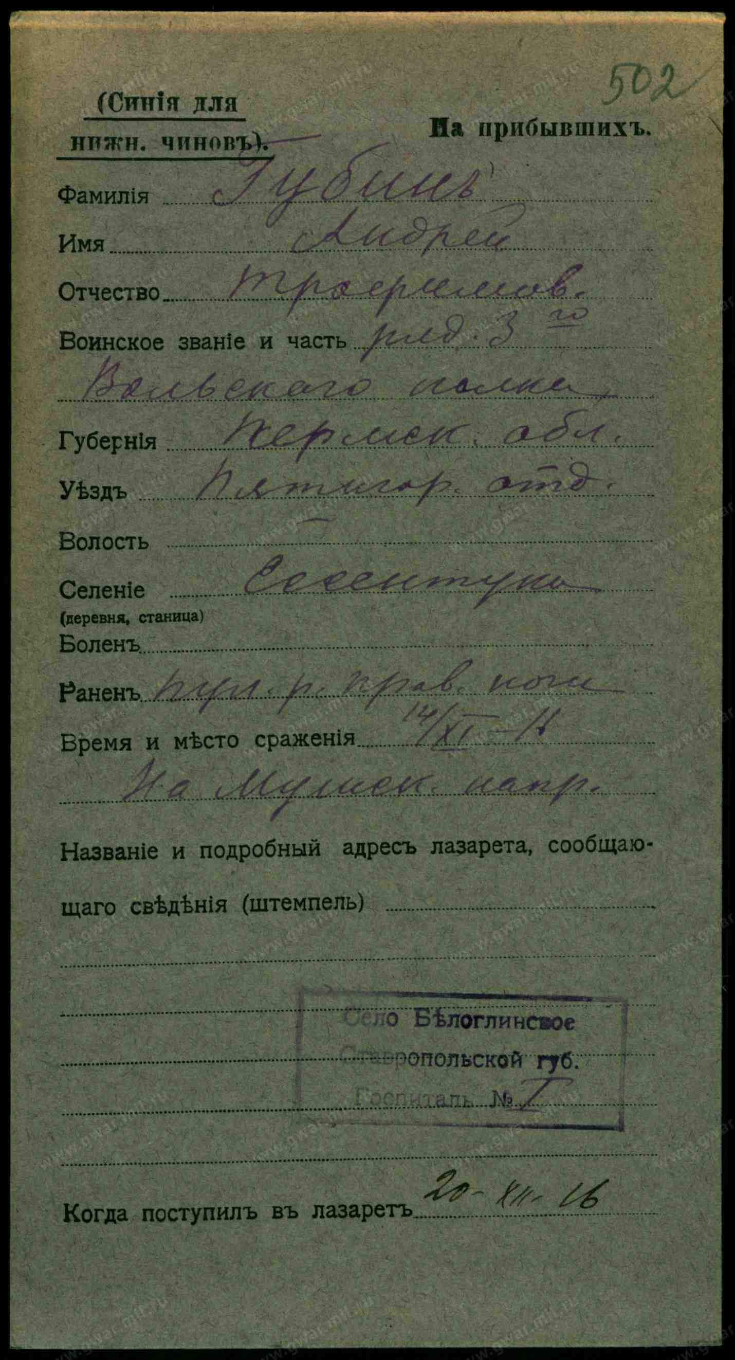 Список Георгиевских кавалеров 1-го Волгского ЕГО ИМПЕРАТОРСКОГО ВЫСОЧЕСТВА НАСЛЕДНИКА ЦЕСАРЕВИЧА полка Терского казачьего войска.