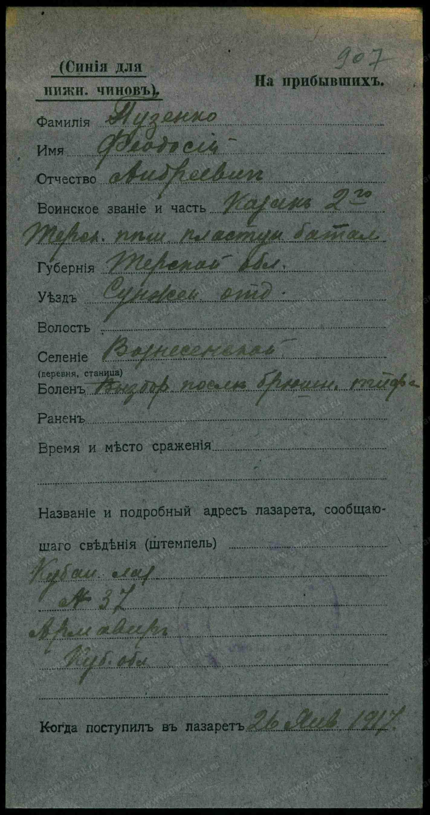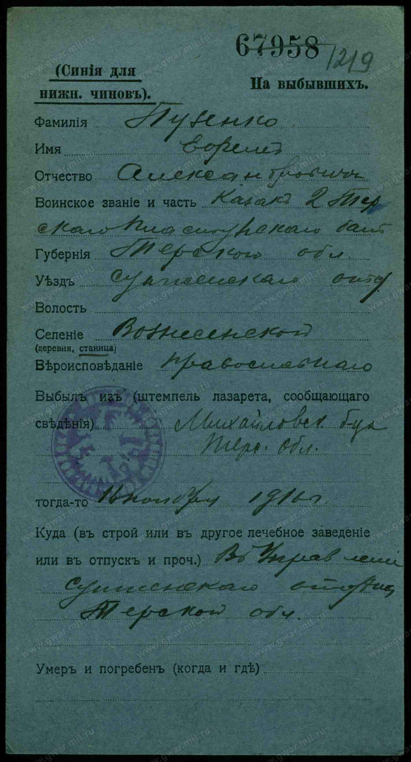 *** Станица не указана, предполагаю, что тоже из Вознесенской...
