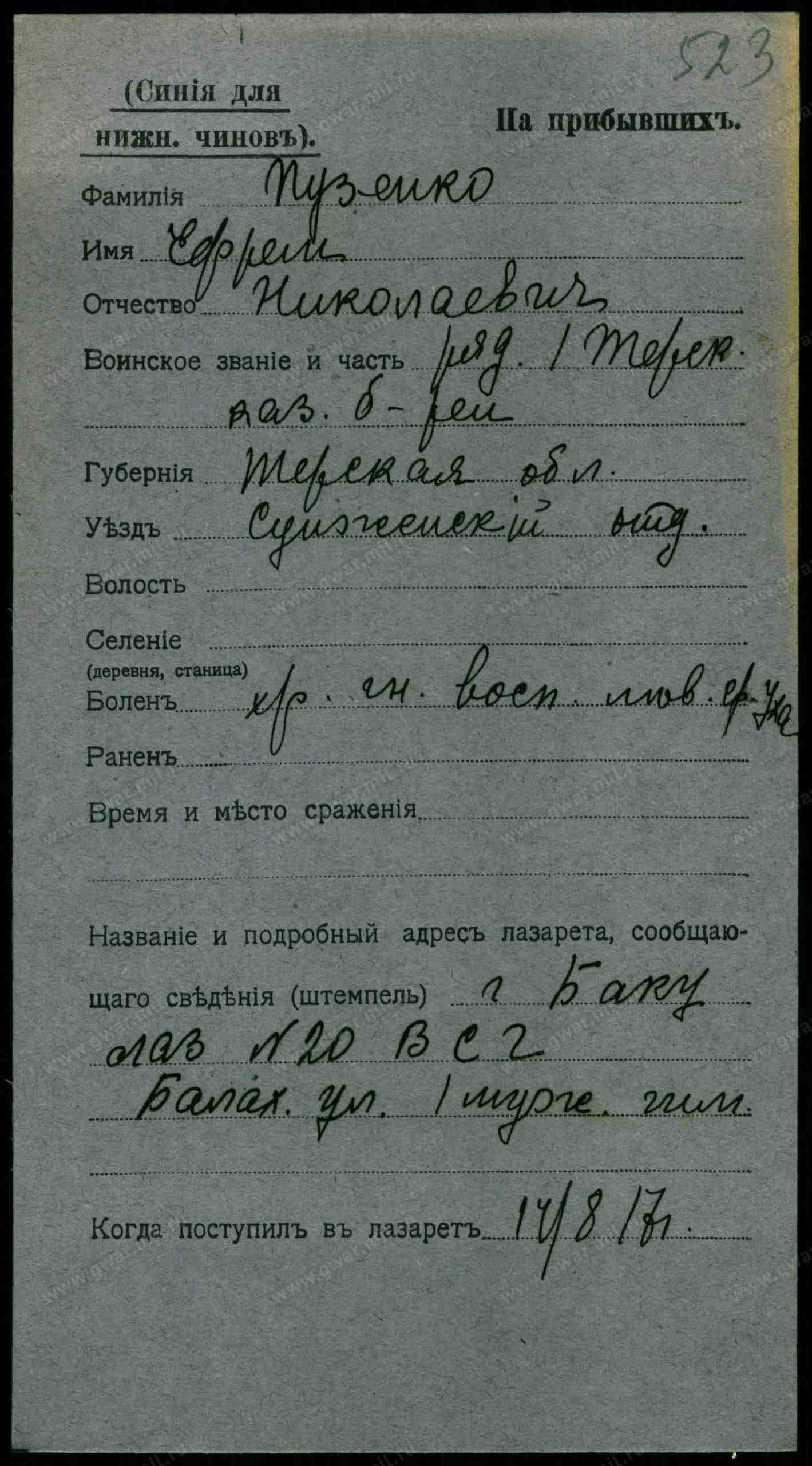 __.__.1914 Чечено-Ингушская АССР, Мамедовский р-н, ст. Вознесенская, Место службы: 370 зсп. Именные списки частей