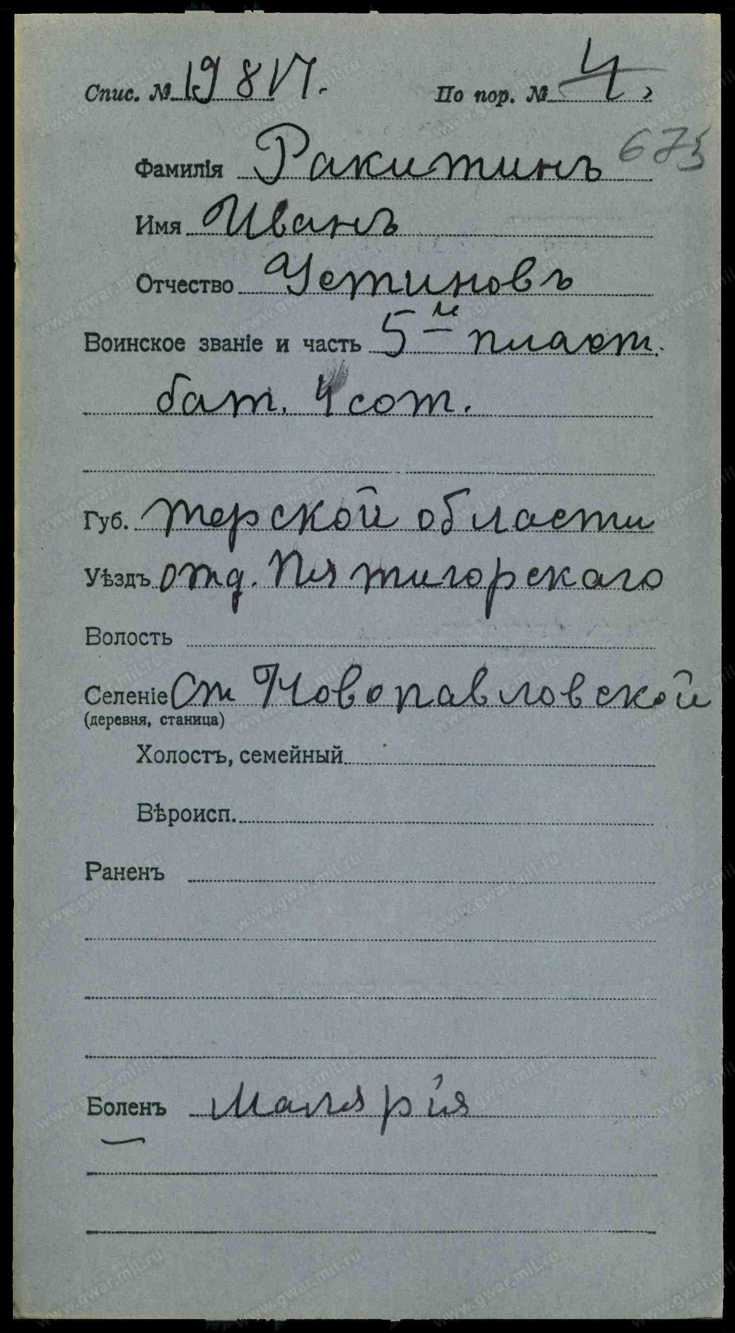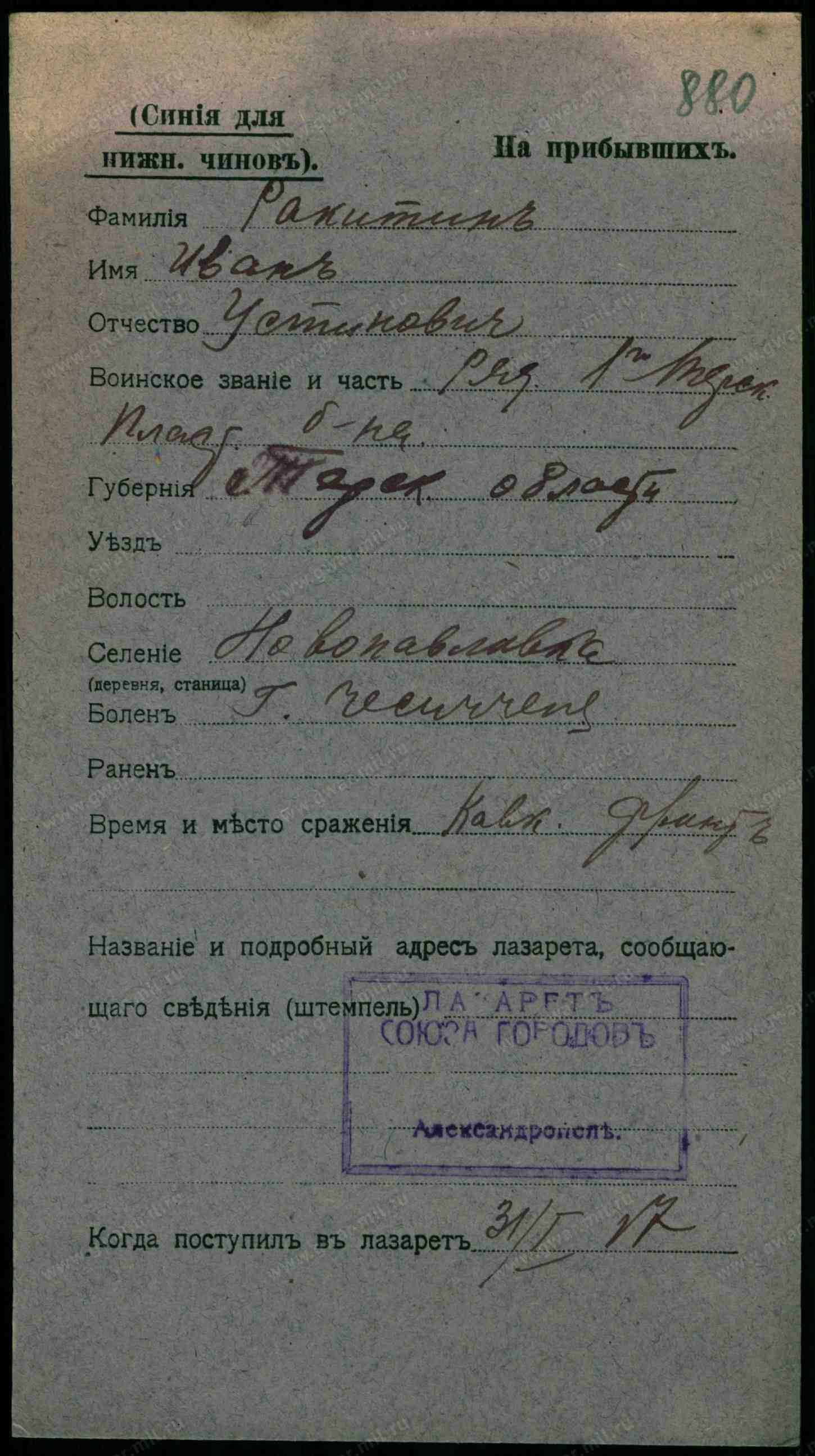 Фонд Картотека бюро учета потерь в Первой мировой войне (офицеров и солдат)