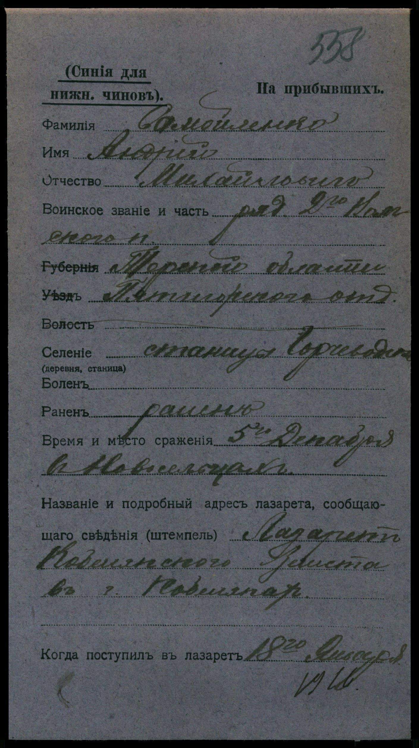 Список Георгиевских кавалеров 1-го Волгского ЕГО ИМПЕРАТОРСКОГО ВЫСОЧЕСТВА НАСЛЕДНИКА ЦЕСАРЕВИЧА полка Терского казачьего войска.