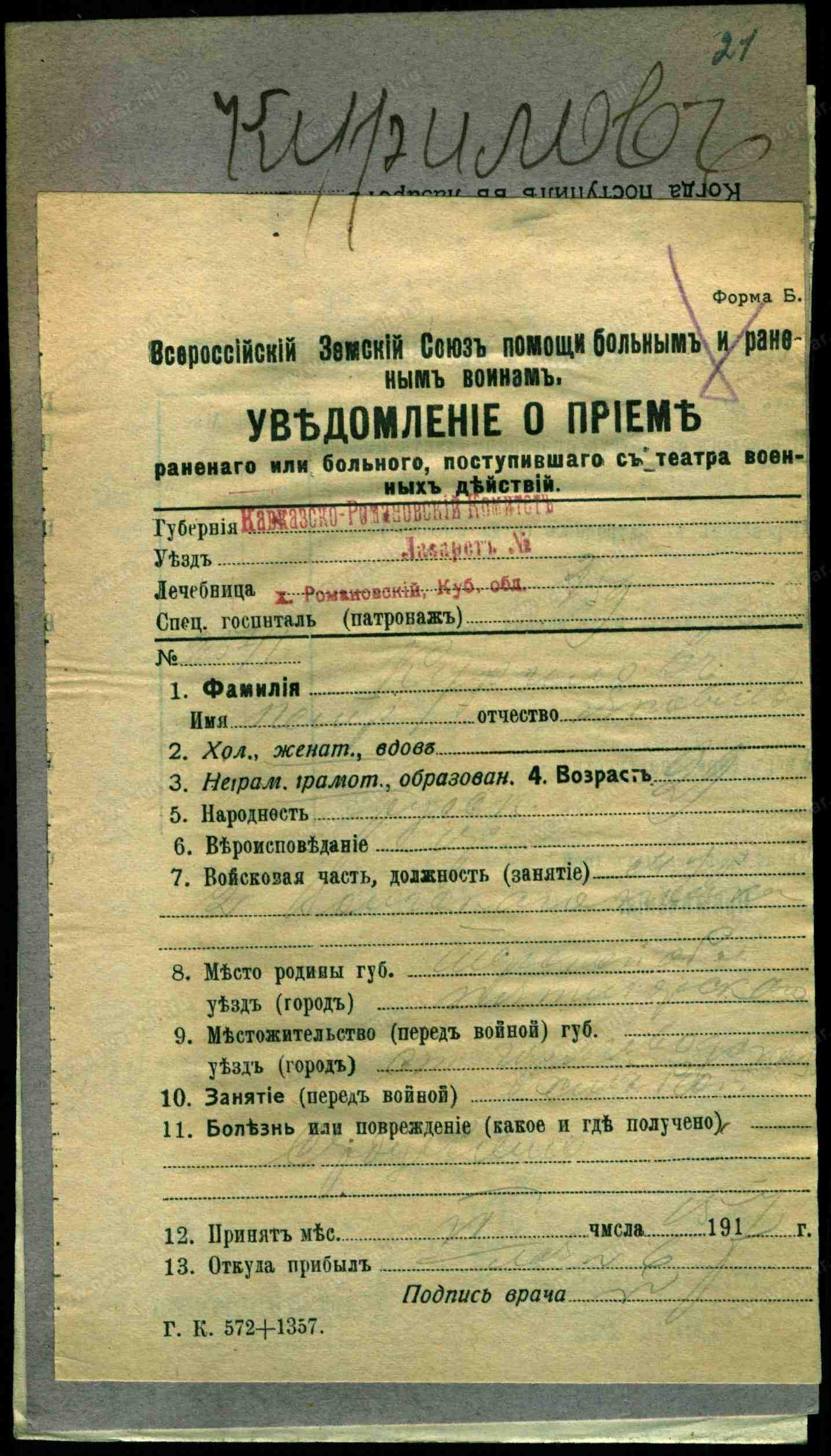 Красноармеец, __.__.1895 Ставропольский край, станица Горячеводская , Место службы: п/п 1507. Донесение о потерях
