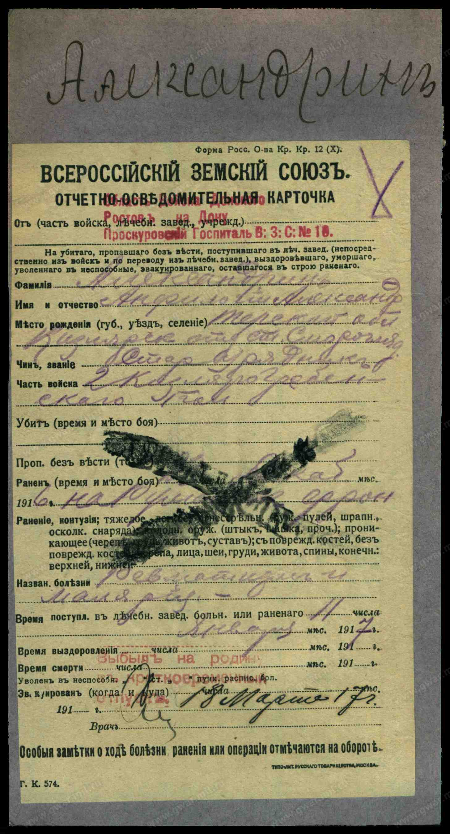 4. Александрин Фаламей Андреев, сын, 9 лет, казак, родился здесь, стар., родной язык русский, грамотный, в 1-клас. ст. школе М.Н.П., при отце.