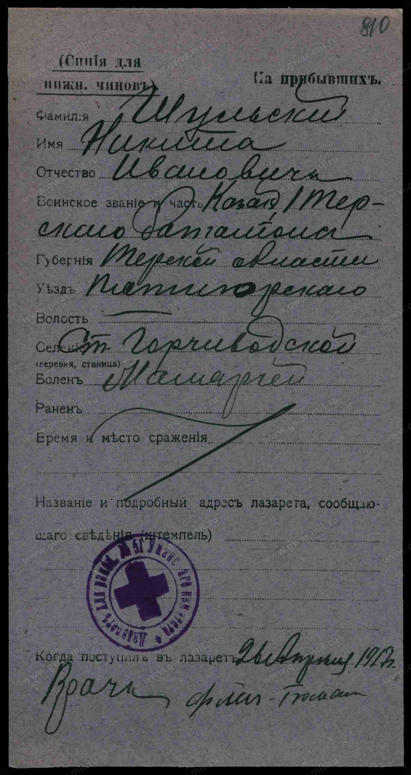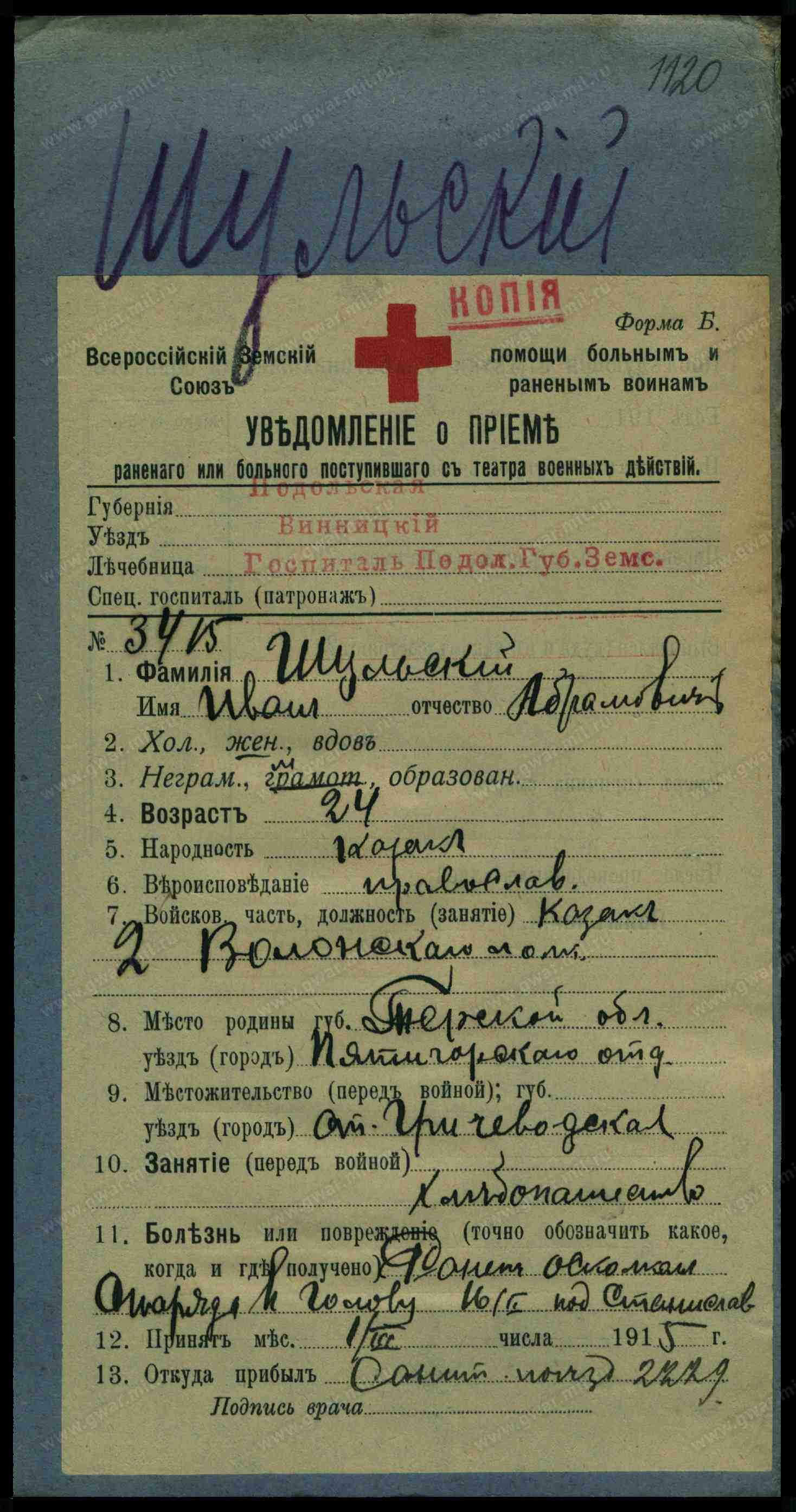 Фонд Картотека бюро учета потерь в Первой мировой войне (офицеров и солдат)
