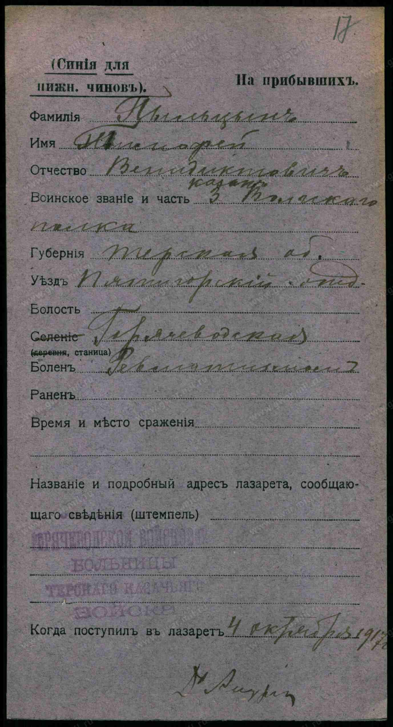 Фонд Картотека бюро учета потерь в Первой мировой войне (офицеров и солдат)