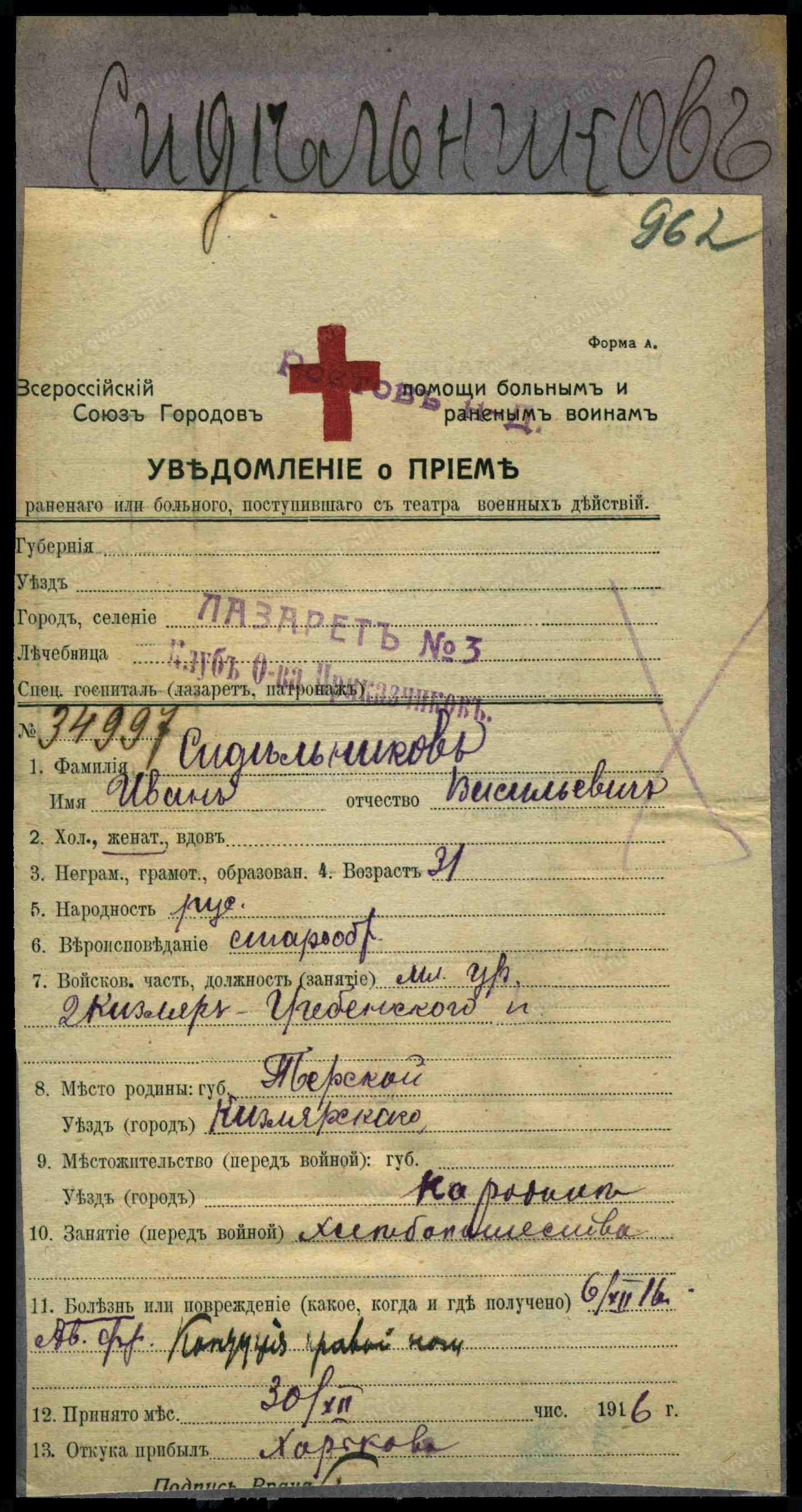 Рядовой, __.__.1899 Грозненская обл., ст. Ермоловская. ВПП и ЗП