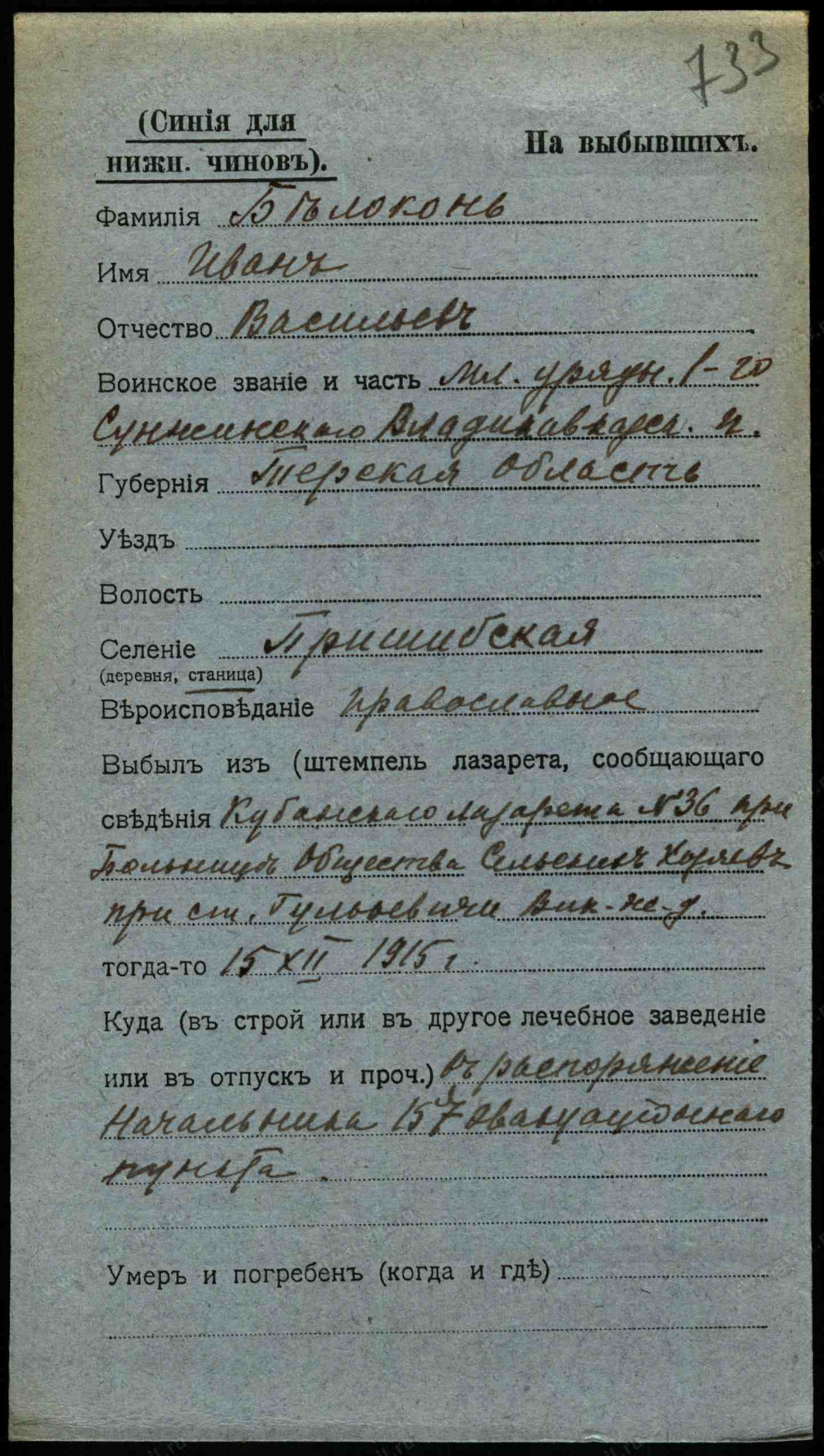 1. Станицы Пришибской Петр Белоконь. 23р. 75 коп.