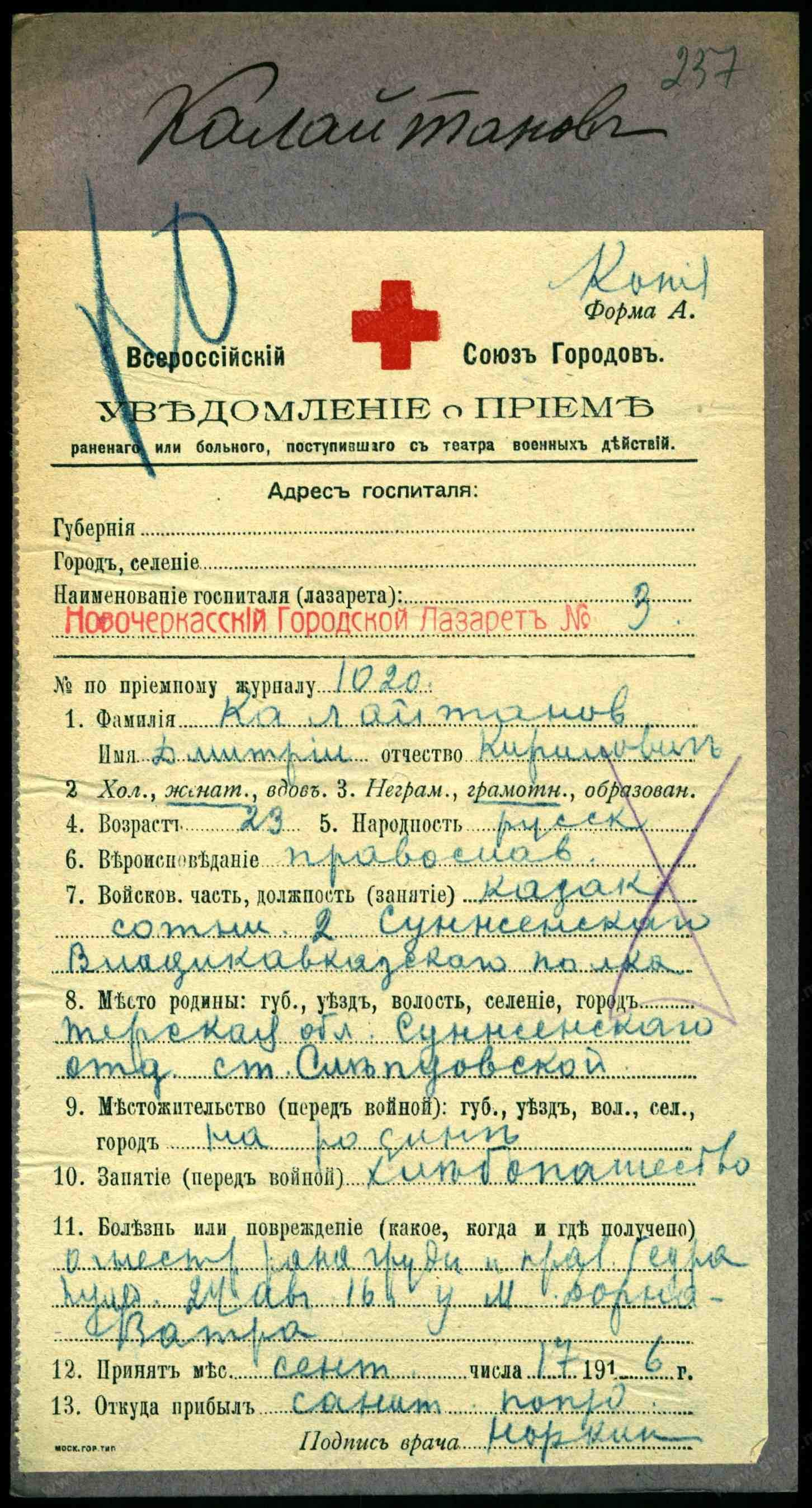 Жена: Калыйтанова Степанида Григ. ст. Орджоникидзевская