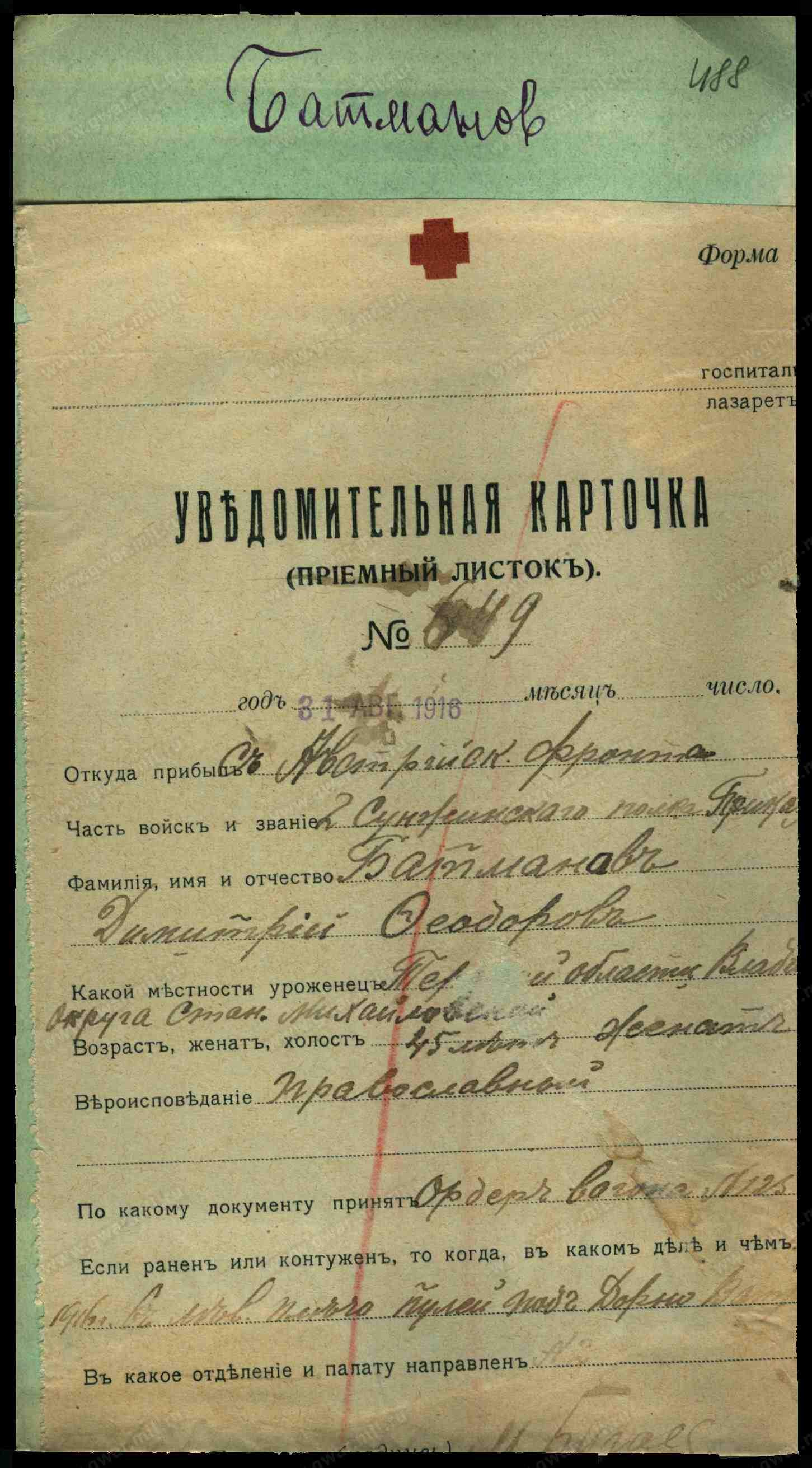 Рядовой, __.__.1913 Грозненская обл., Сунженский р-н, ст. Серноводская. Донесение о потерях