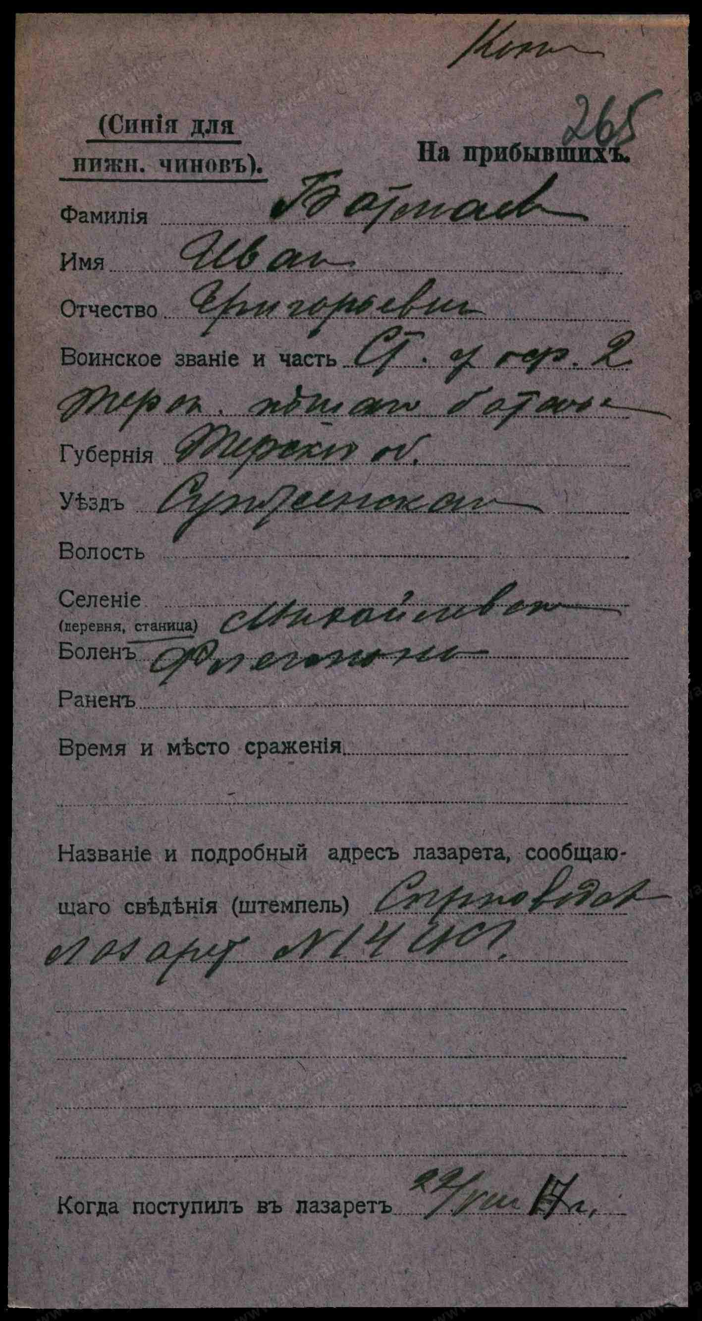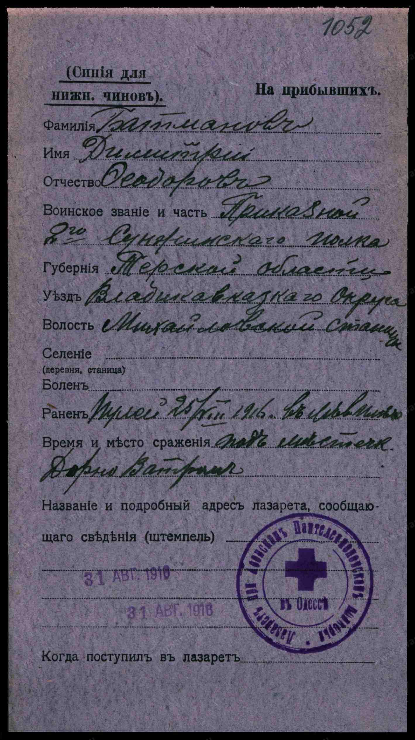 __.__.1909 Грозненская обл., Сунженский р-н, ст. Михайловская, Место службы: 62 осбр