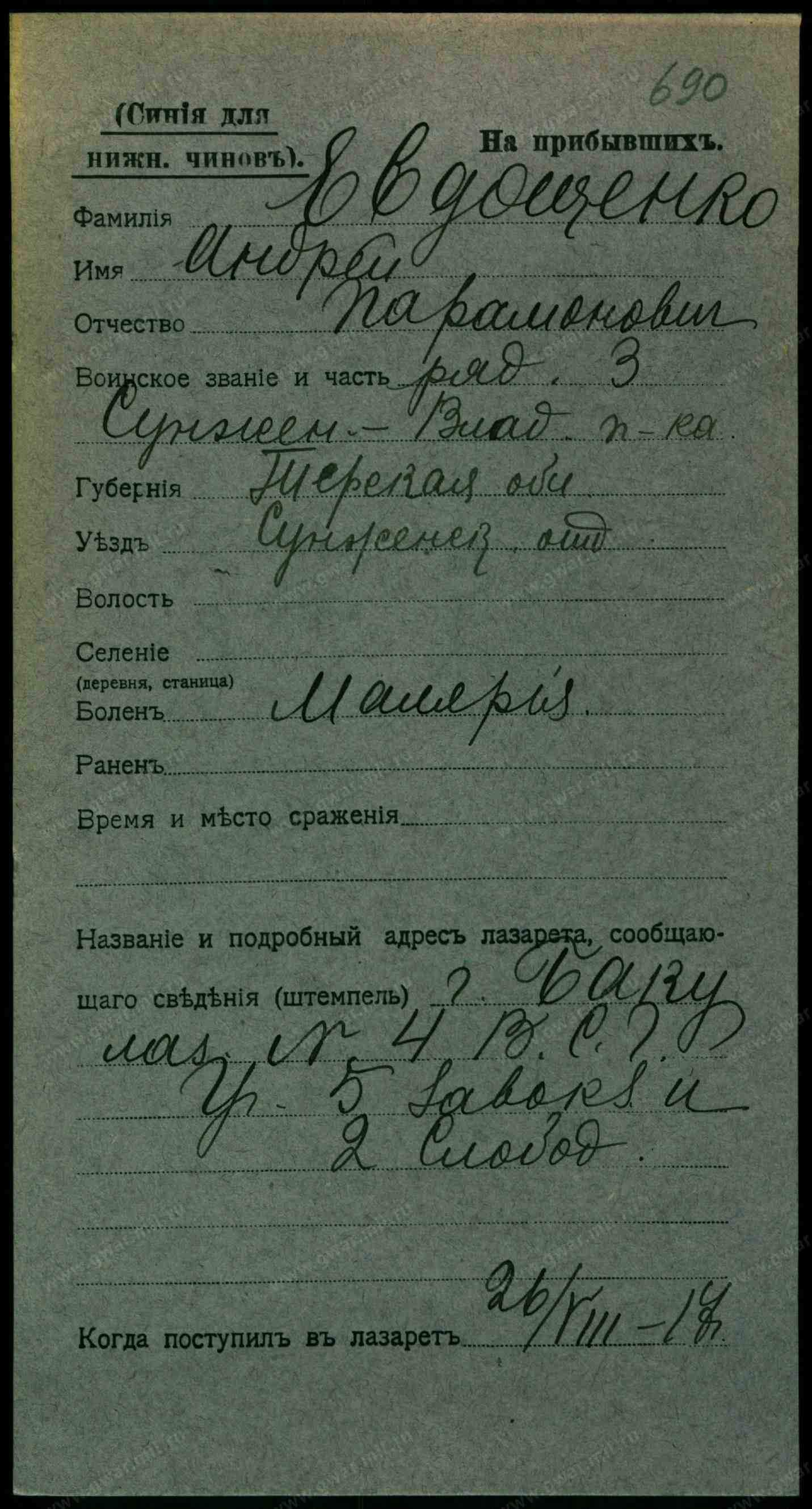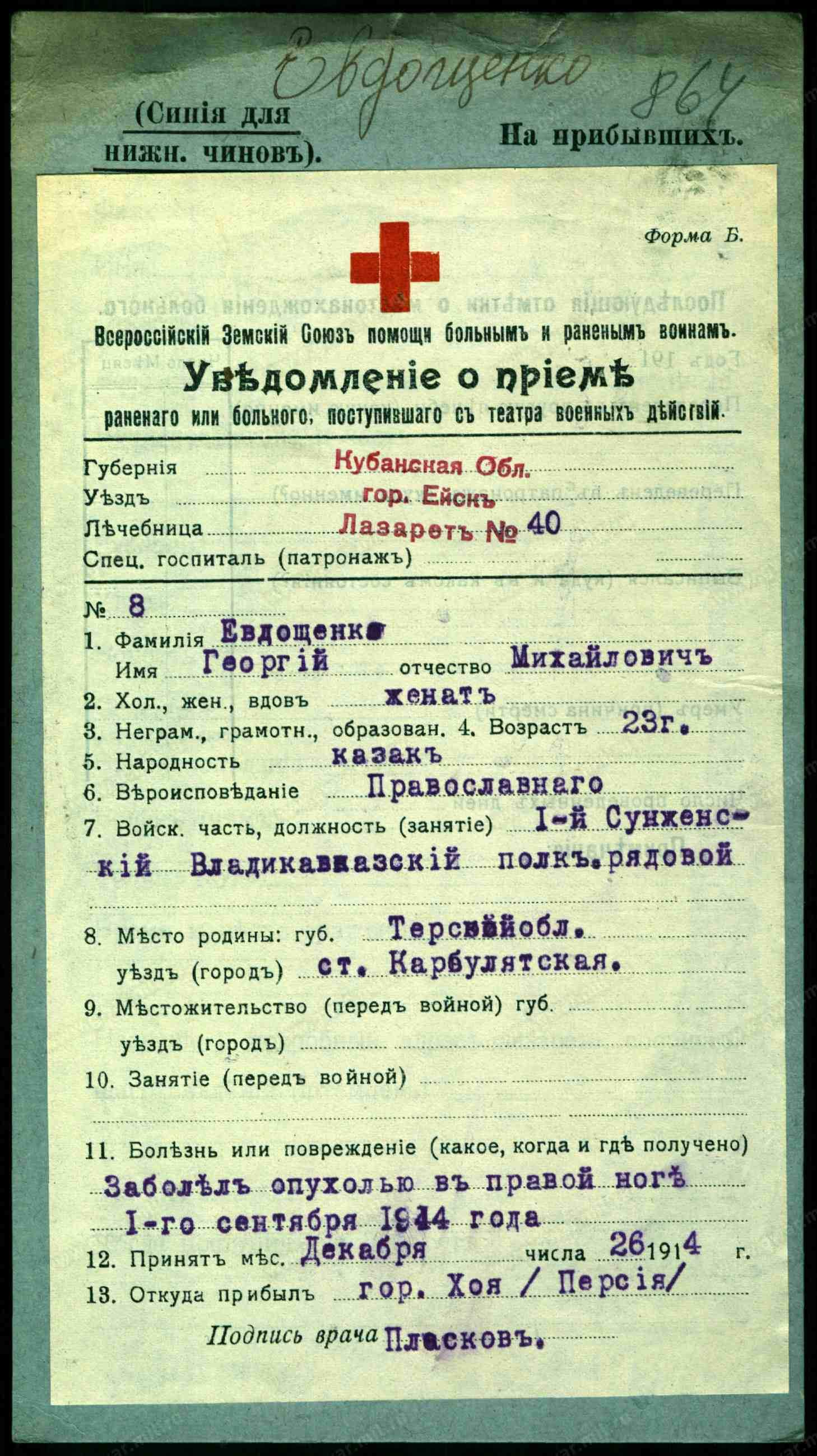 Мать - Евдощенко Елена Семеновна 1886 г.р., сестра Анна 1915 г.р. ст. Орджоникидзевская