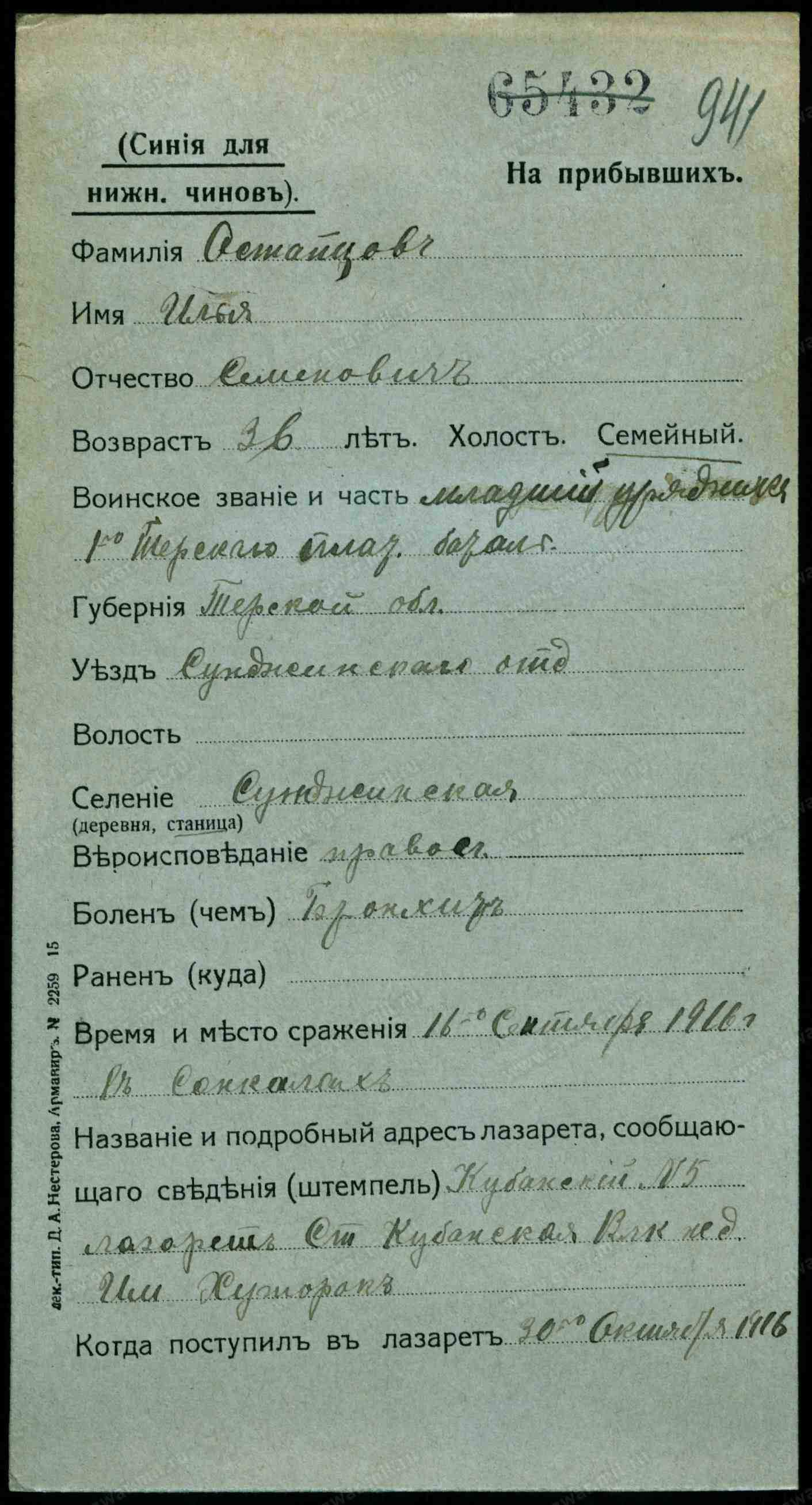 "При сем объявляю для сведения список казаков Терского Казачьего Войска, награжденных знаками отличия Военного ордена в войну с Японией и получившие подарки от Войска,, установленный приказом по Войску за № 203 1905 года..."