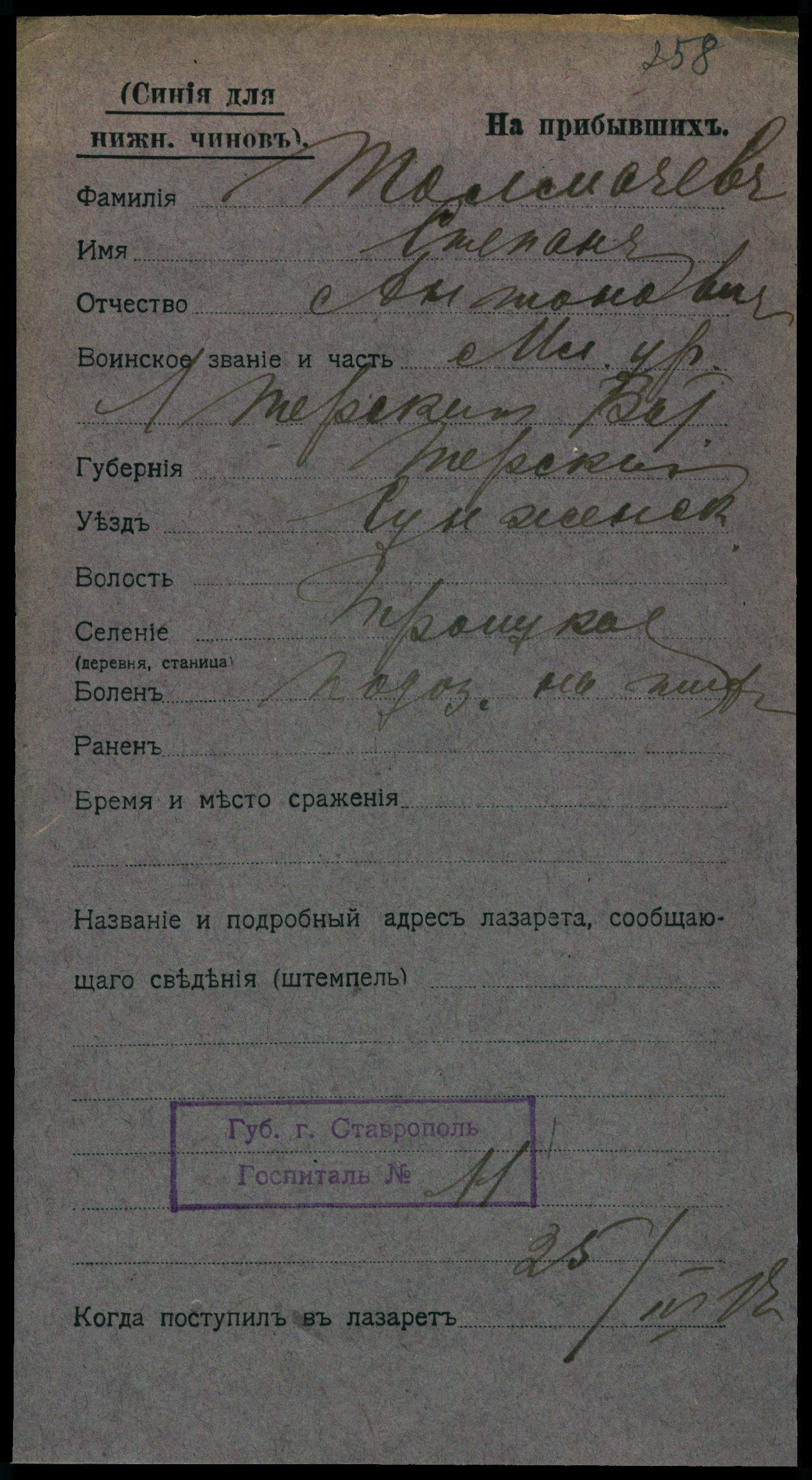 Красноармеец, __.__.1900 Грозненская обл., Сунженский р-н, ст. Троицкая, Место службы: 67 сп 20 сд