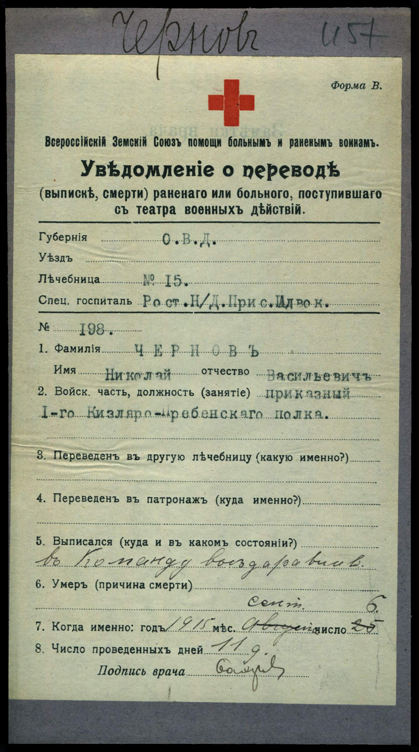 Увольняются от должности почетных судей ст. Александрийской, Кизлярского отдела, за прослужением трехлетия, казаки: Мирон Чернов, Даниил Кириенко, Архип Ляшко и урядник Авдей Устименко, вместо которых утверждаются в этой же должности избранные в оную общественным сбором названной станицы, казаки: Василий Чернов, Василий Сердюк, Иван Андрейченко и приказный Федор Зуй.