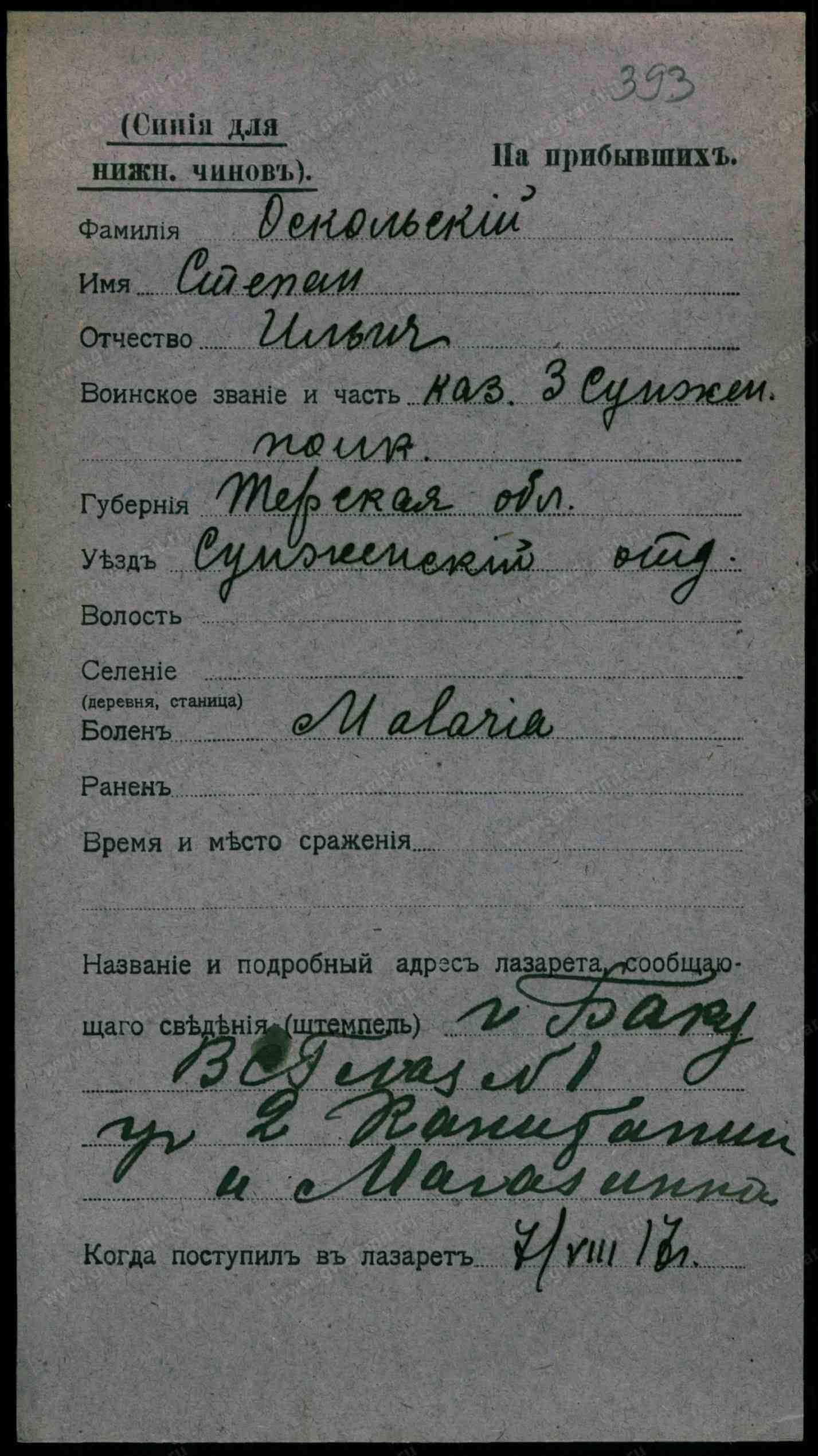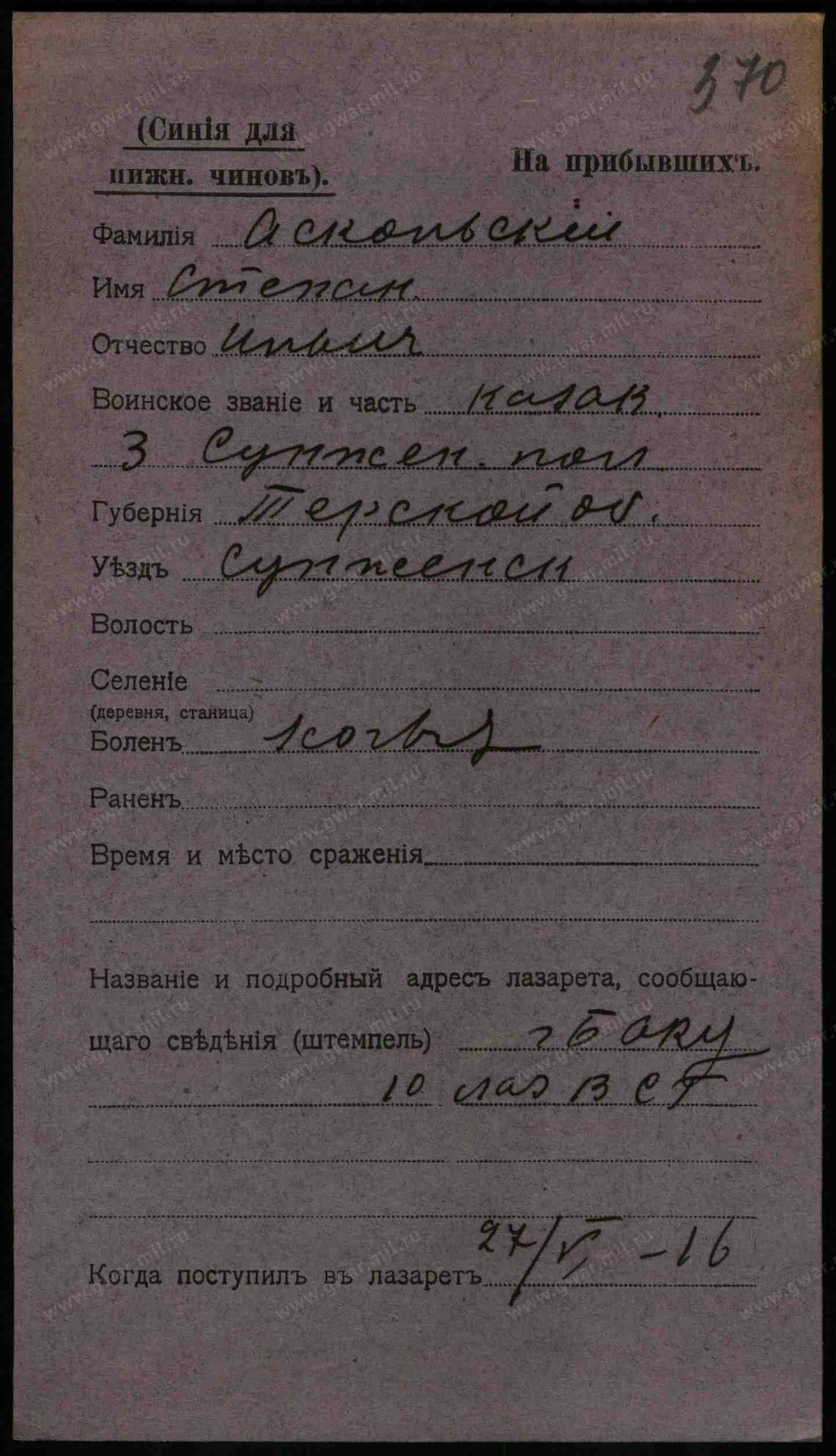 Гв. ефрейтор, __.__.1895 Грозненская обл., Сунженский р-н, с. Михайловское, Место службы: 359 гв. зенап 10 гв. тк 4 ТА 1 УкрФ