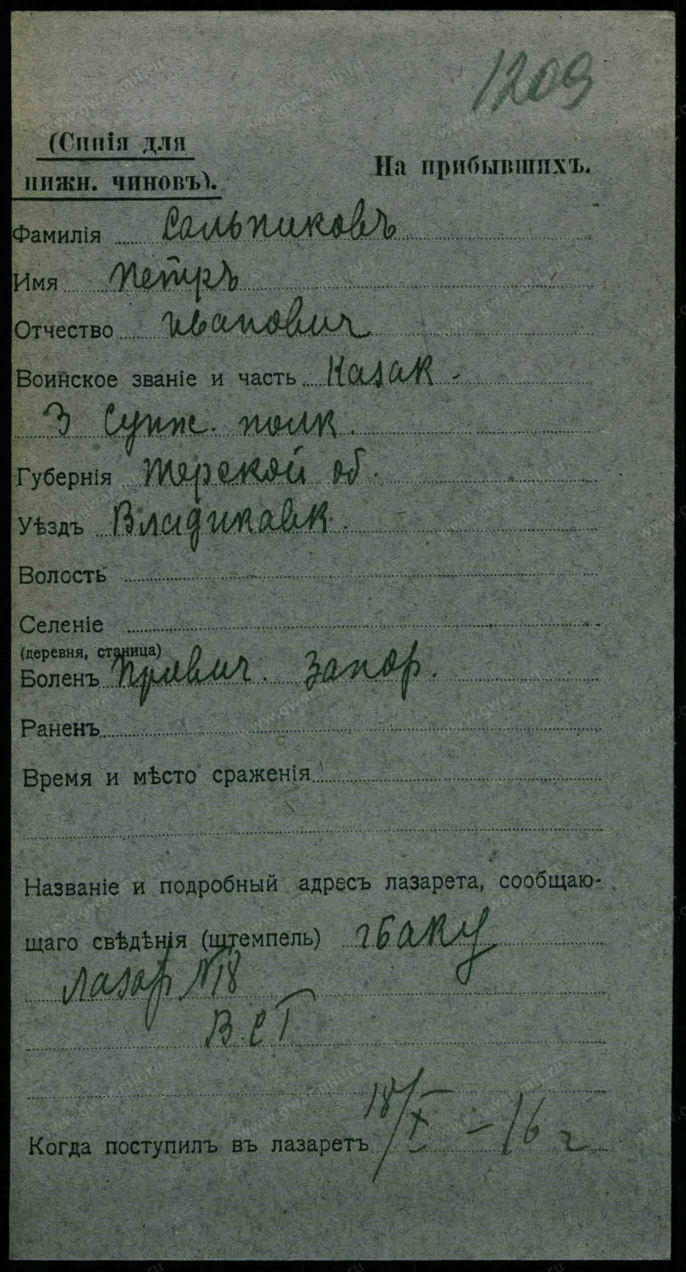 ***Информация о станице отсутствует, предполагаю что возможно из Слепцовской, но полной уверенности нет. Фамилия Сальников мне попалась по ст. Слепцовской, Самашкинской, Терской, Змейской, Ардонской и Троицкой, но все эти данные уже периода после 1917 года. Возможно все Сальниковы изначально из Самашкинской. Если обнаружу дополнительные сведения, то обязательно все скорректирую... Если у кого-то есть сведения по этой фамилии, напишите...