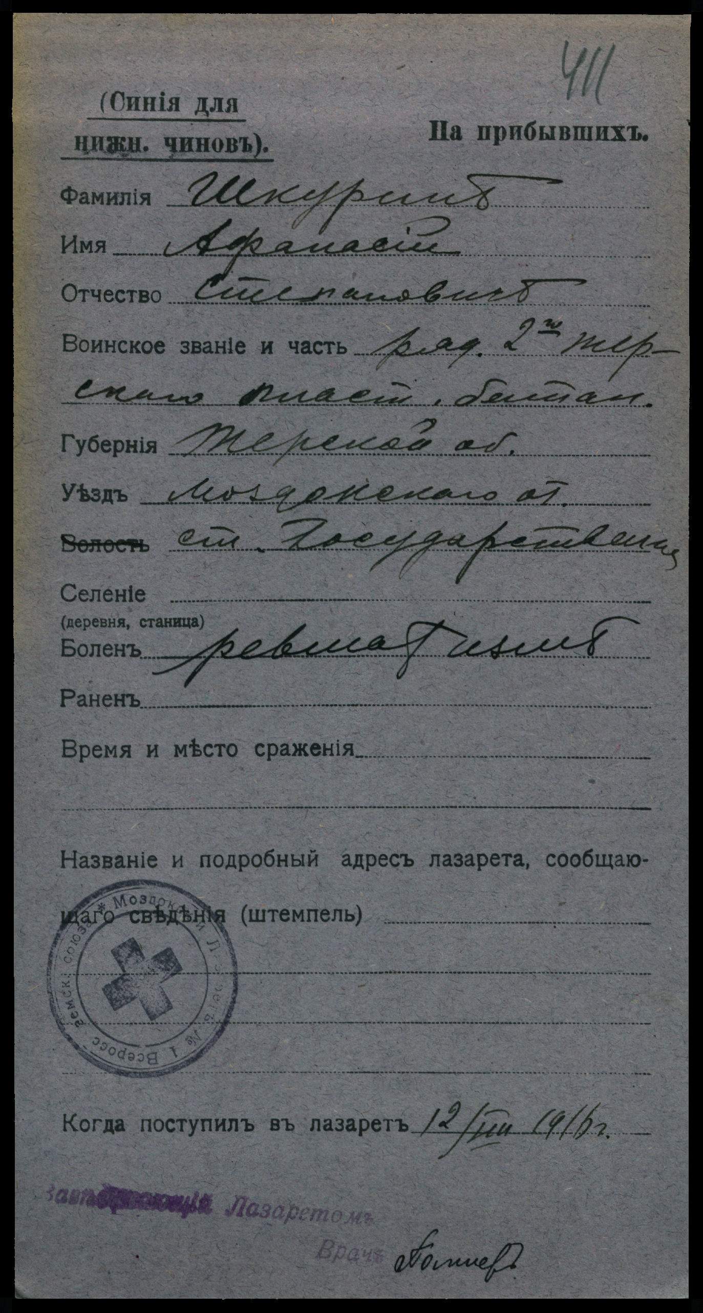 Место рождения Терская обл., Моздокский отдел, Государственная станица