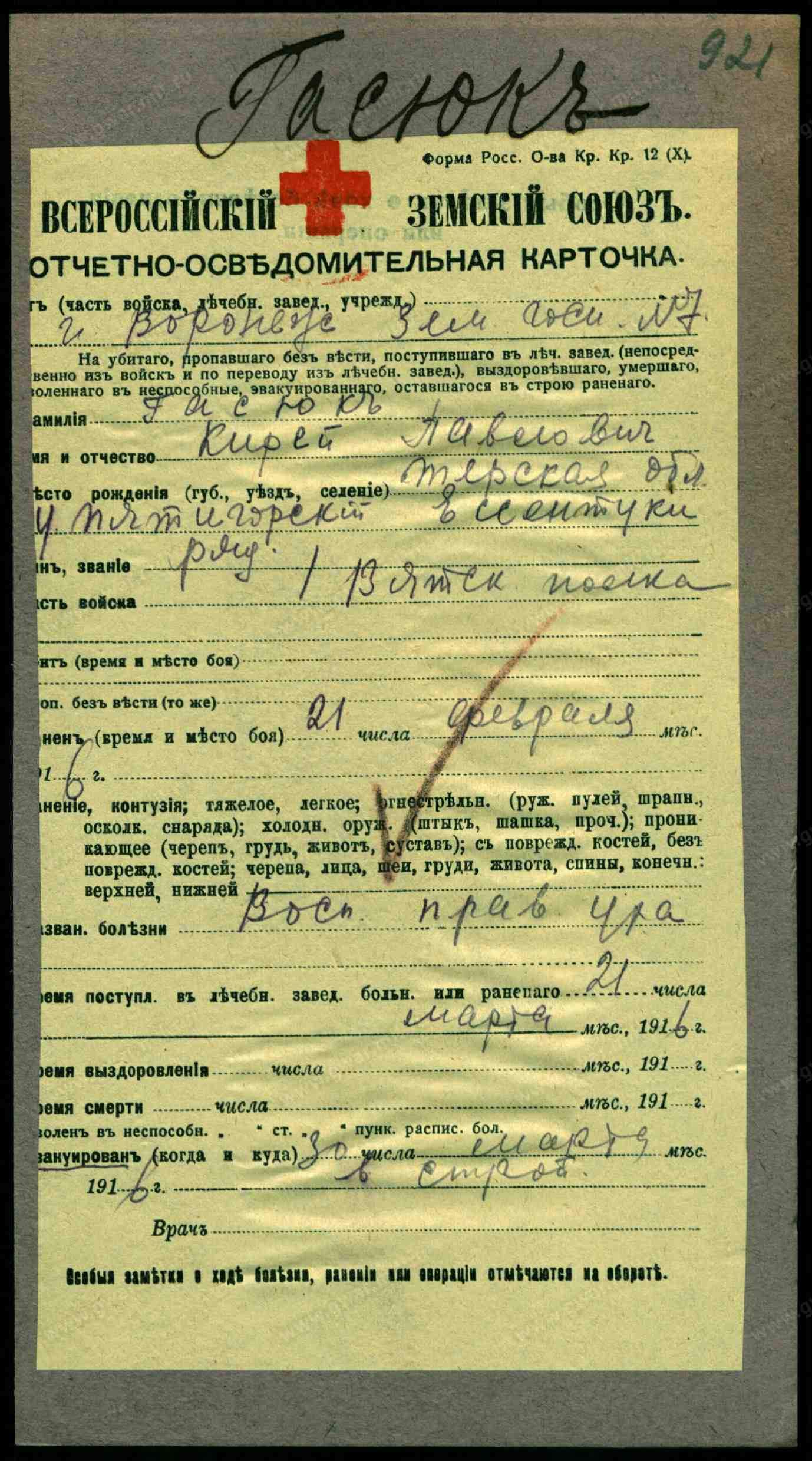 Фонд Картотека бюро учета потерь в Первой мировой войне (офицеров и солдат)