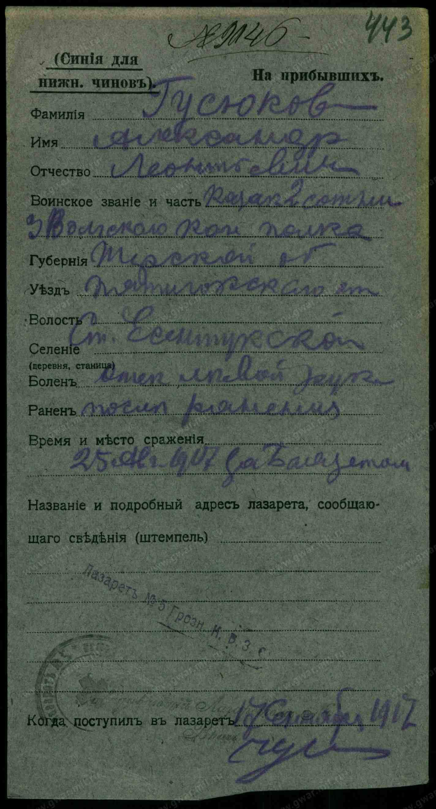 Гасюк Пётр Васильевич Терская обл. Ессентукская ст. ПС урядников 1869