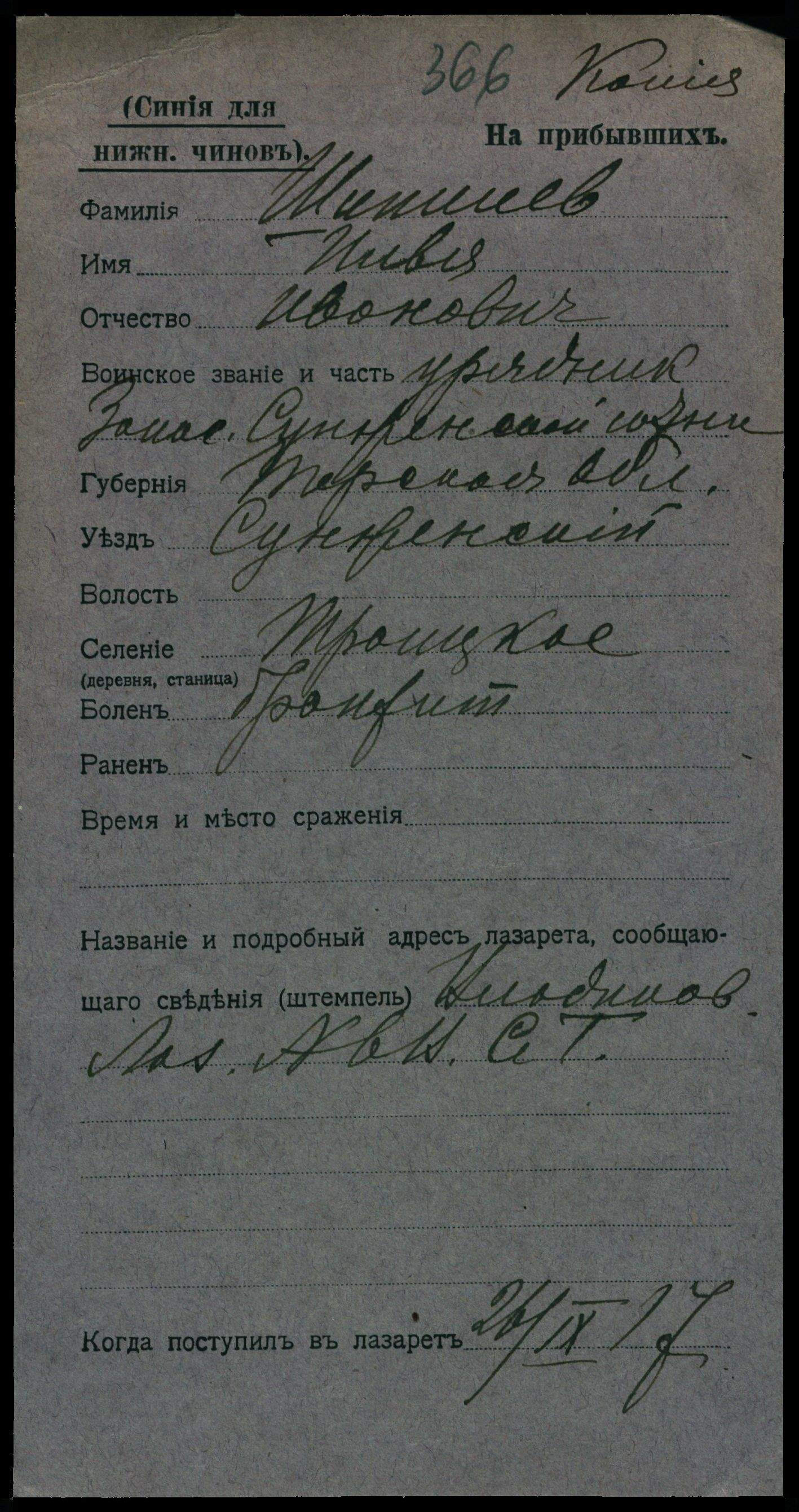 Тип документа Карточка на прибывших (нижние чины)
