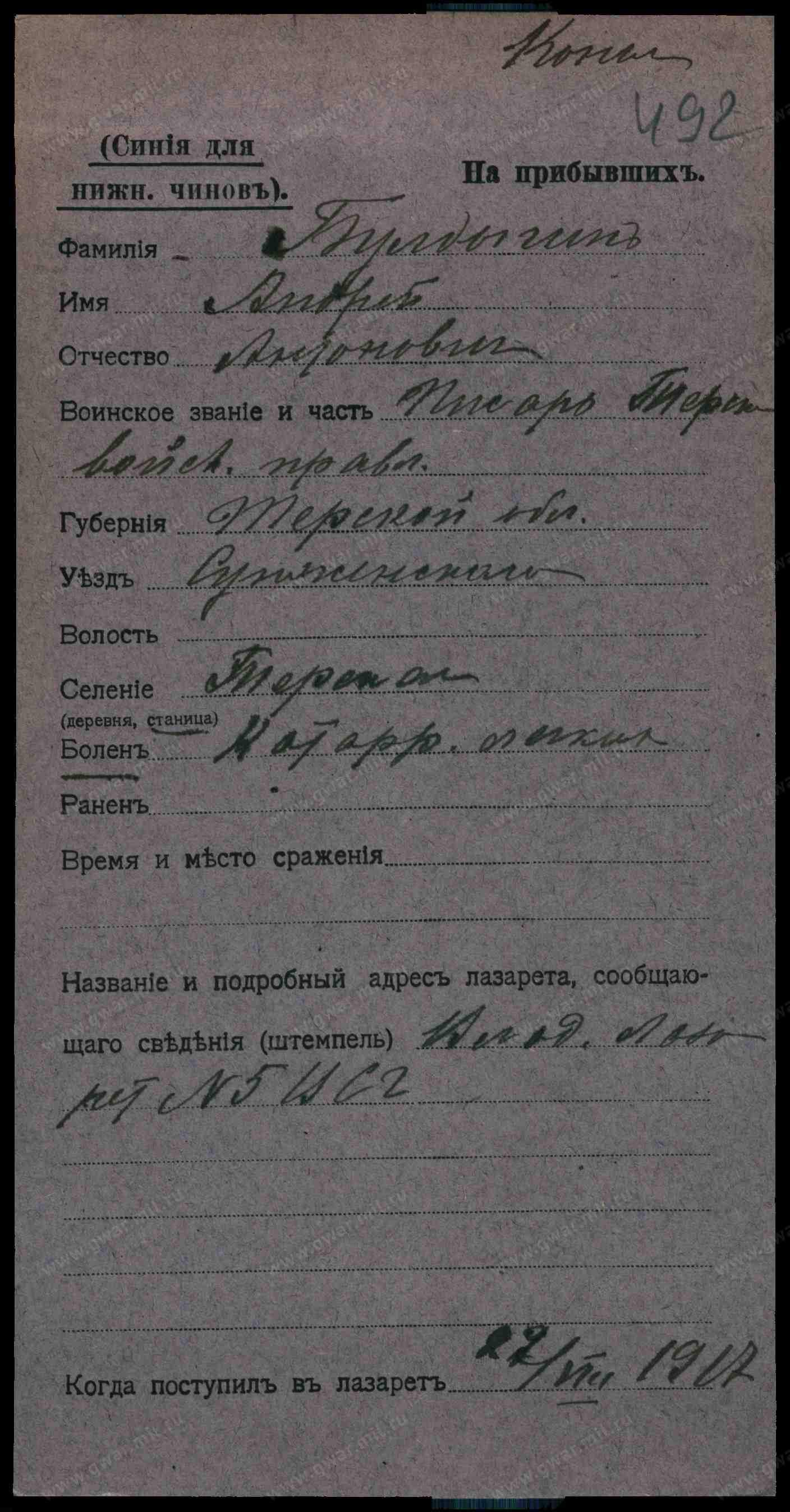 Фонд Картотека бюро учета потерь в Первой мировой войне (офицеров и солдат)