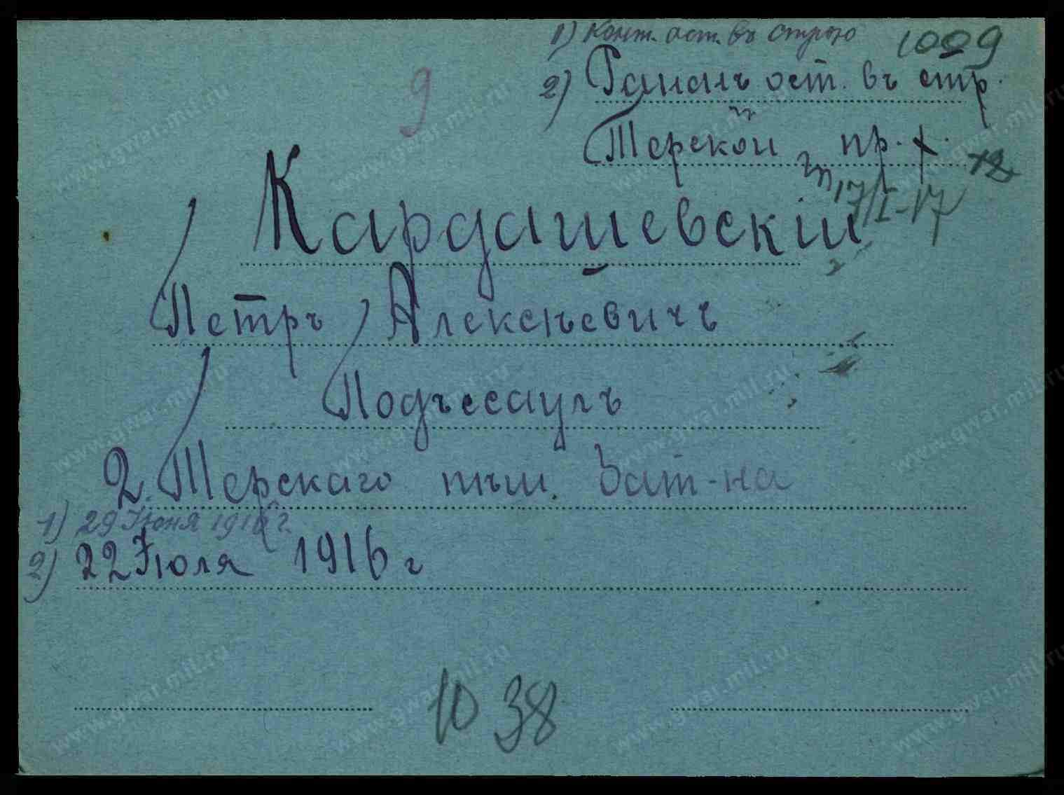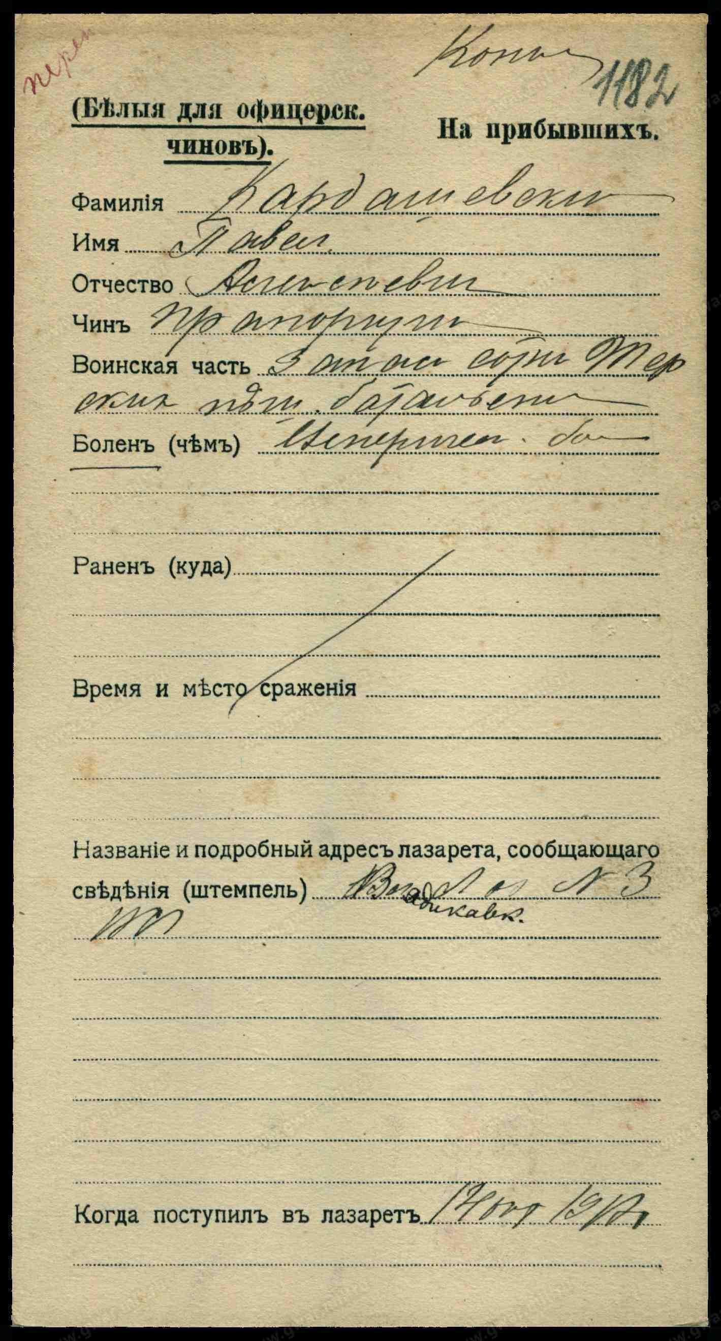 Фонд Картотека бюро учета потерь в Первой мировой войне (офицеров и солдат)