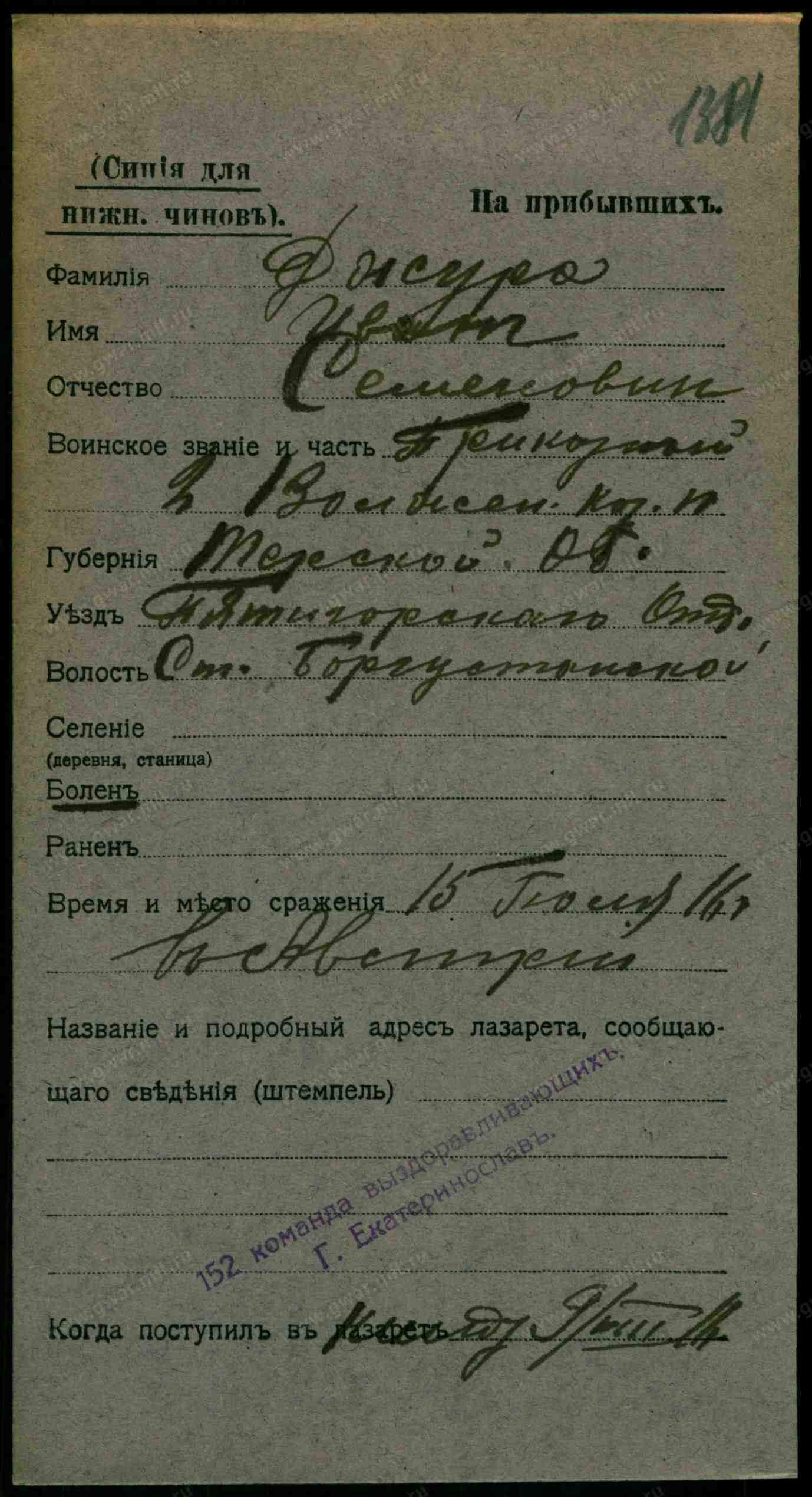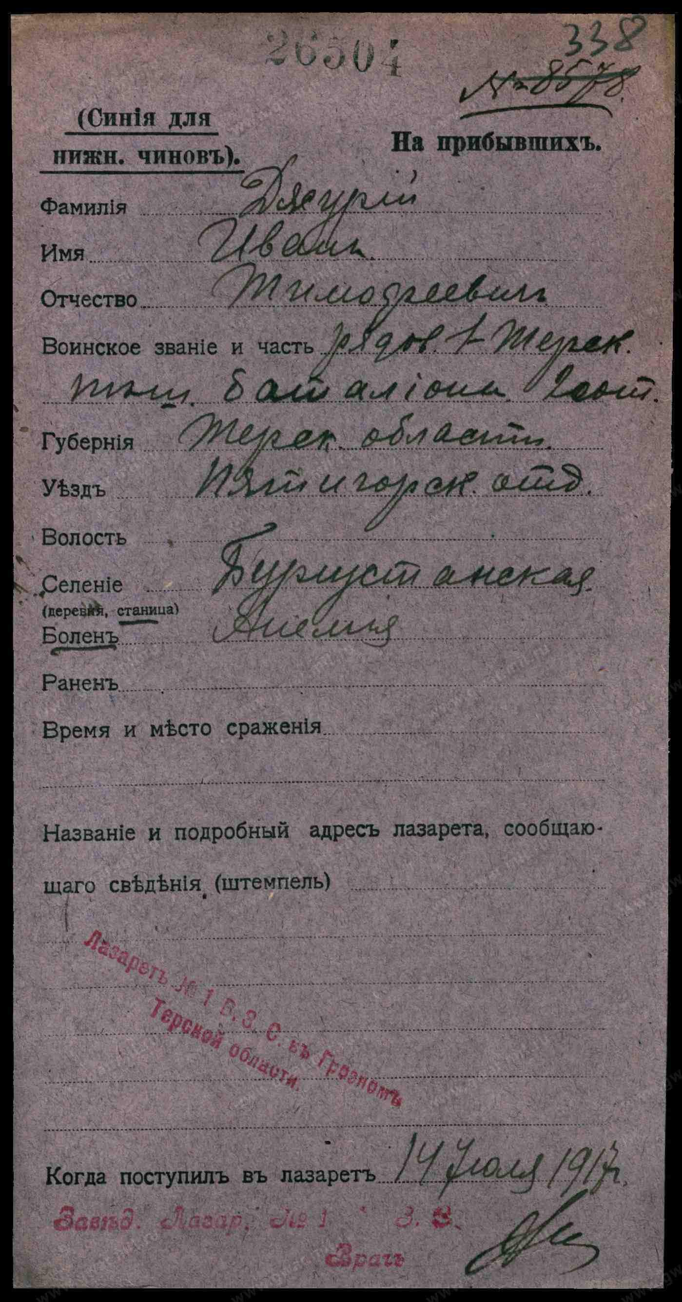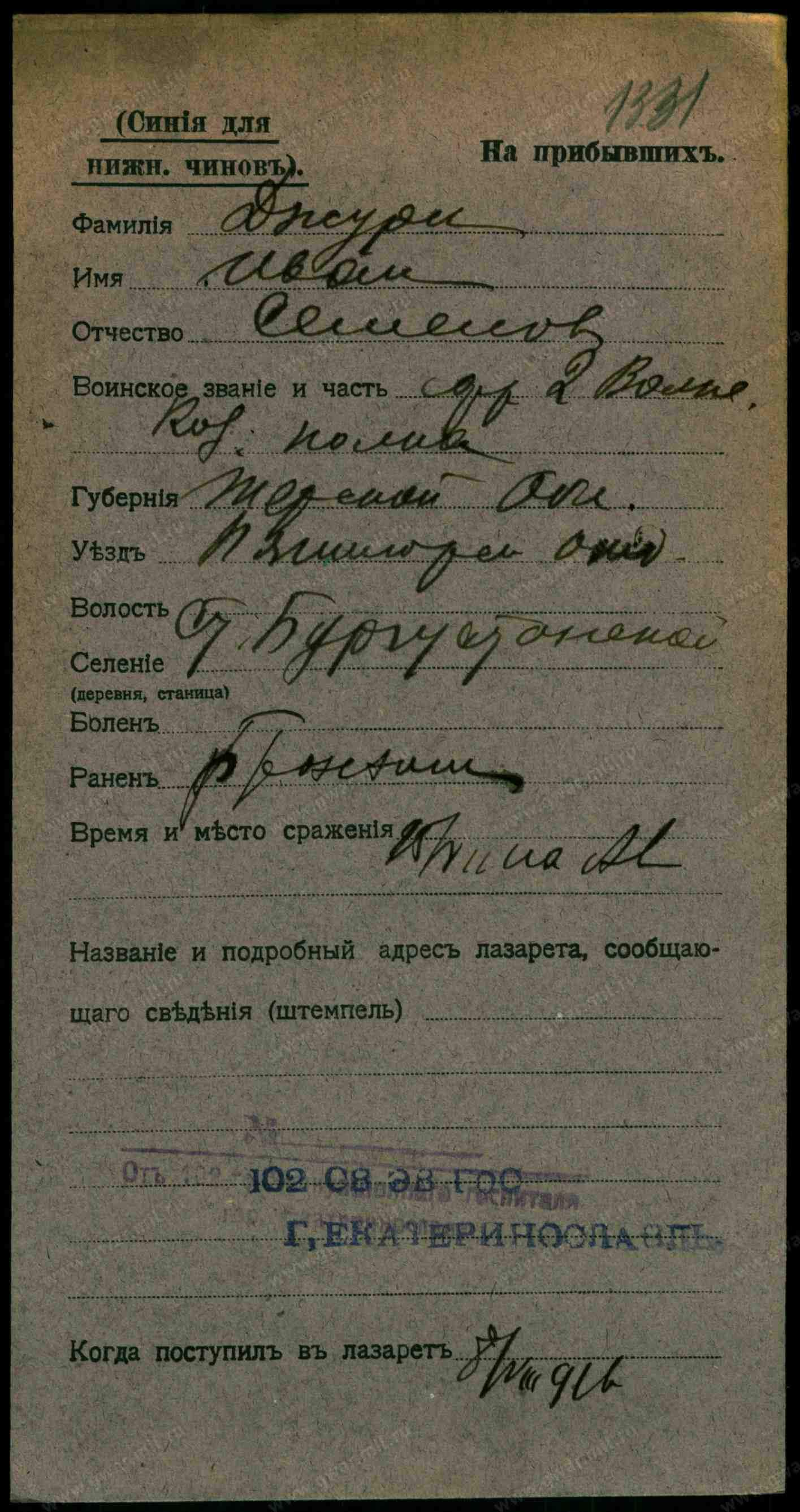 Рядовой, __.__.1912 Ставропольский край, Предгорный р-н, ст. Богустанская