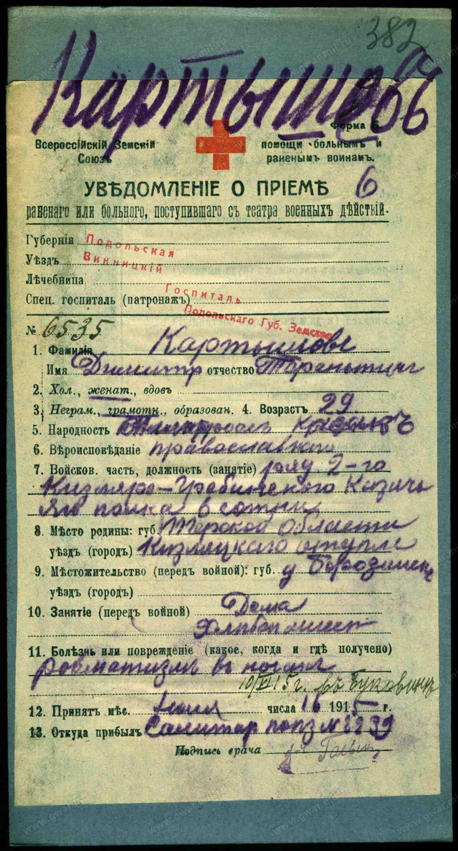 Фонд Картотека бюро учета потерь в Первой мировой войне (офицеров и солдат)