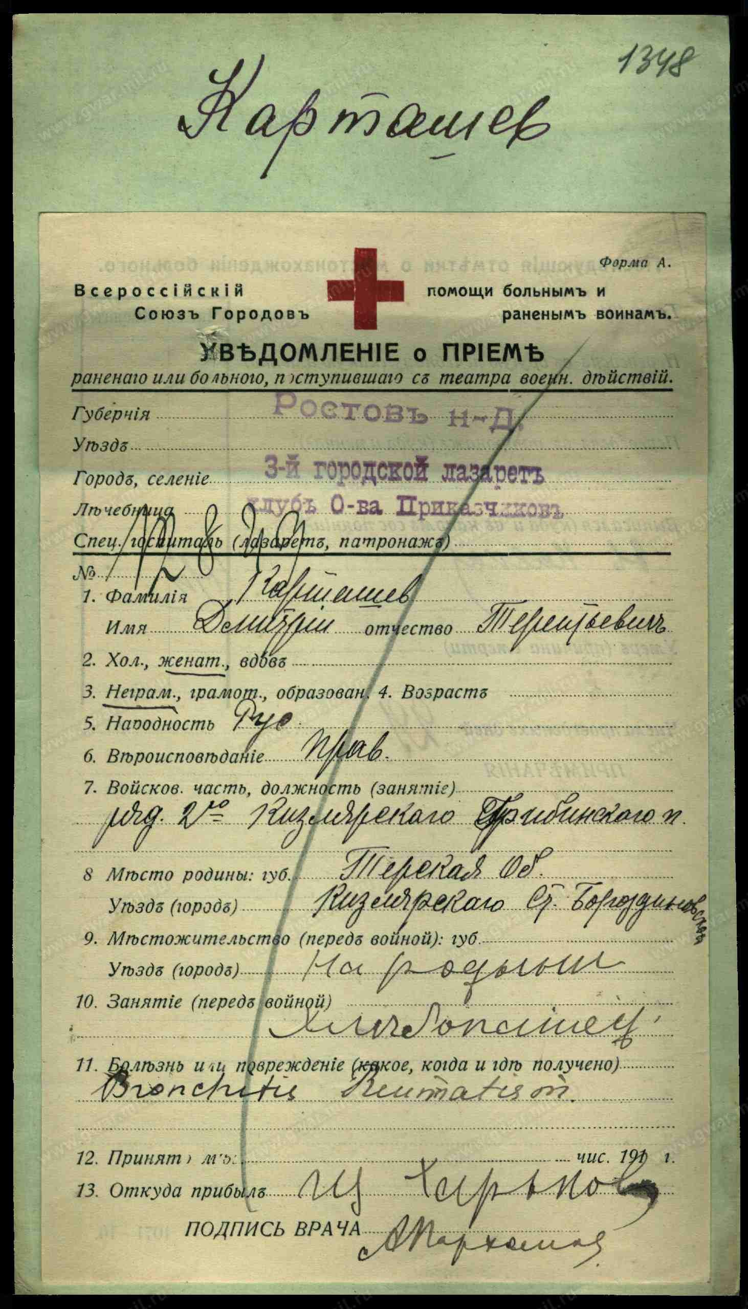 Место рождения Терская обл., Кизлярский отдел, стнц. Бороздинская