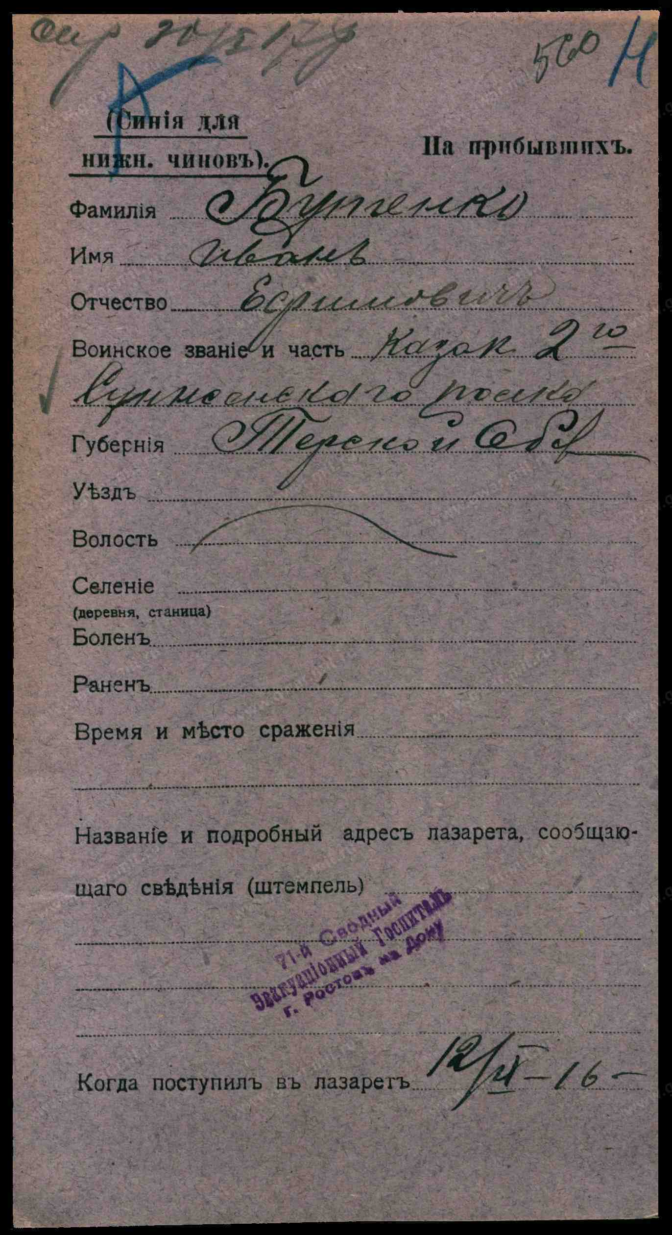Место лечения: Донского Войска обл., г.Ростов-на-Дону