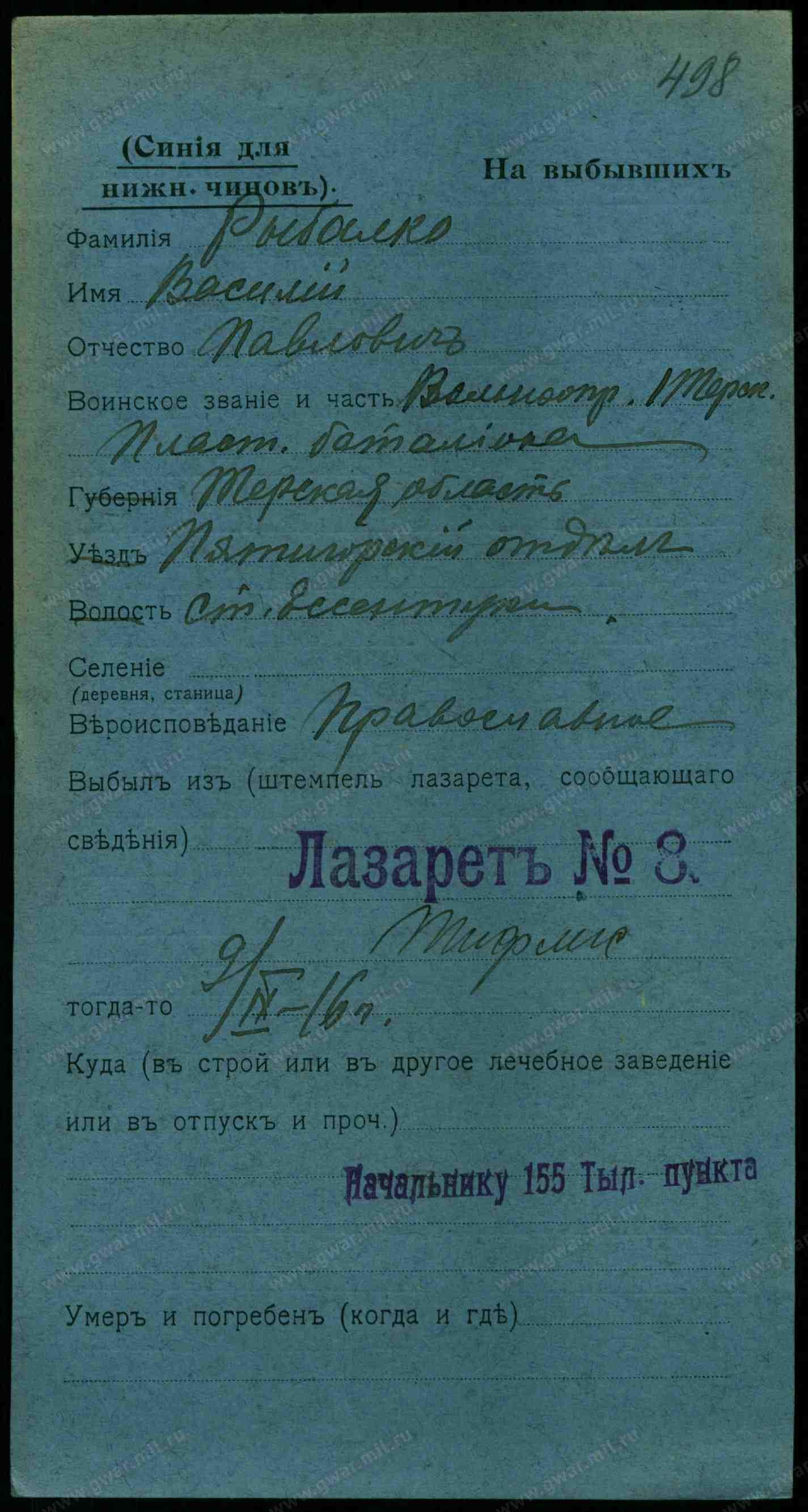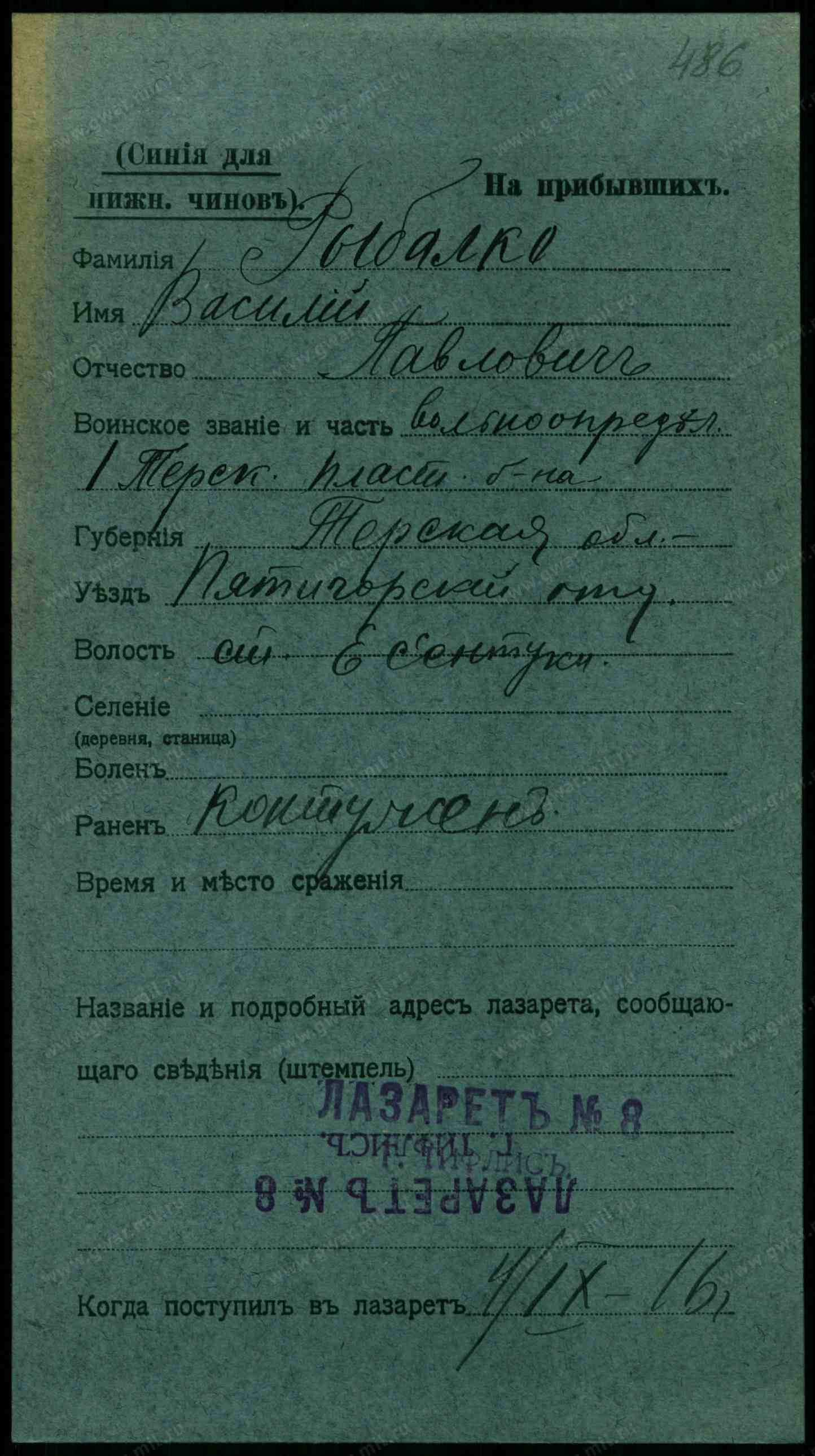 Место рождения Терская обл., Пятигорский отдел, Ессентукская станица