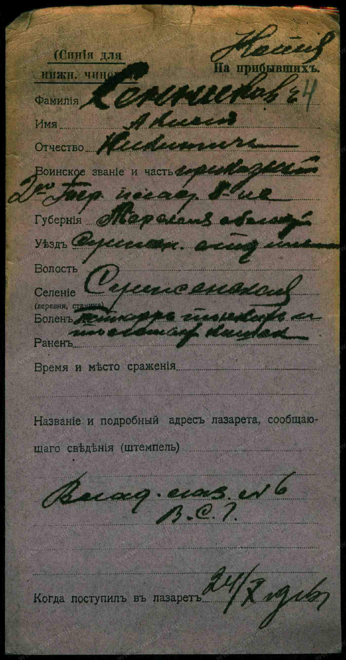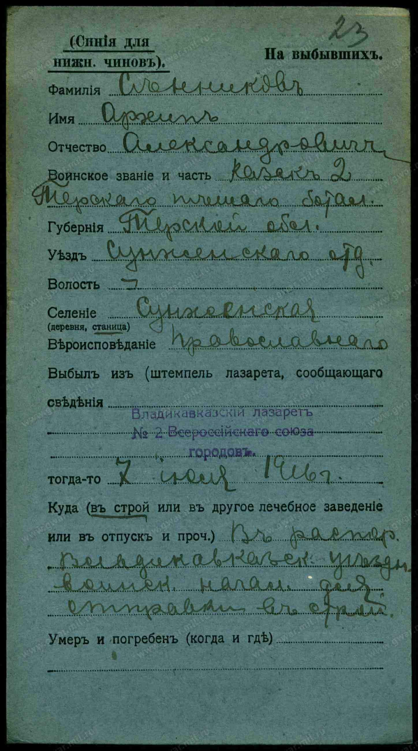 Родители: Казак Сунженской станицы, Терской области ... ... Сенников и законная его жена Анна Евсеева, оба православного исповедания.