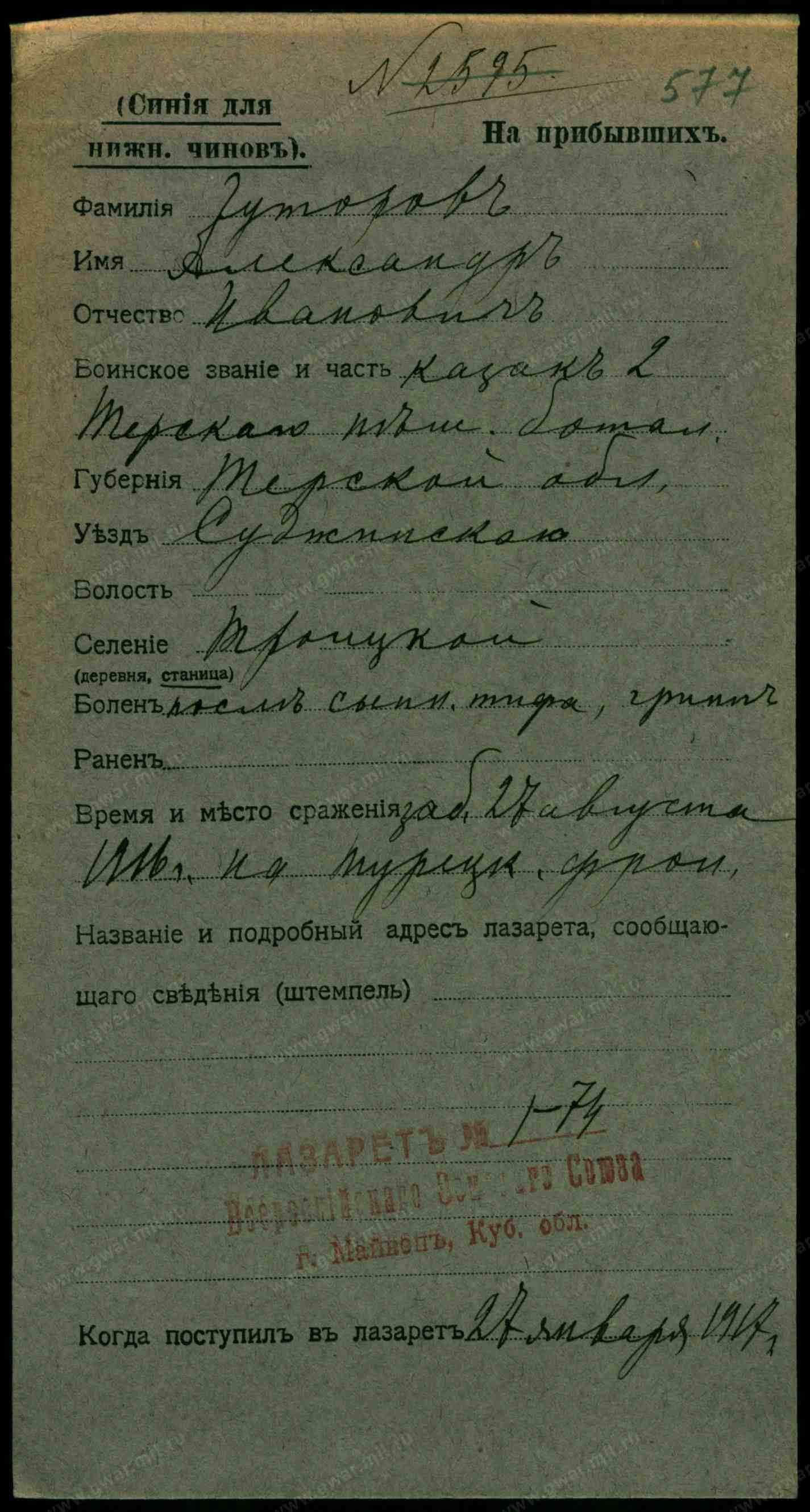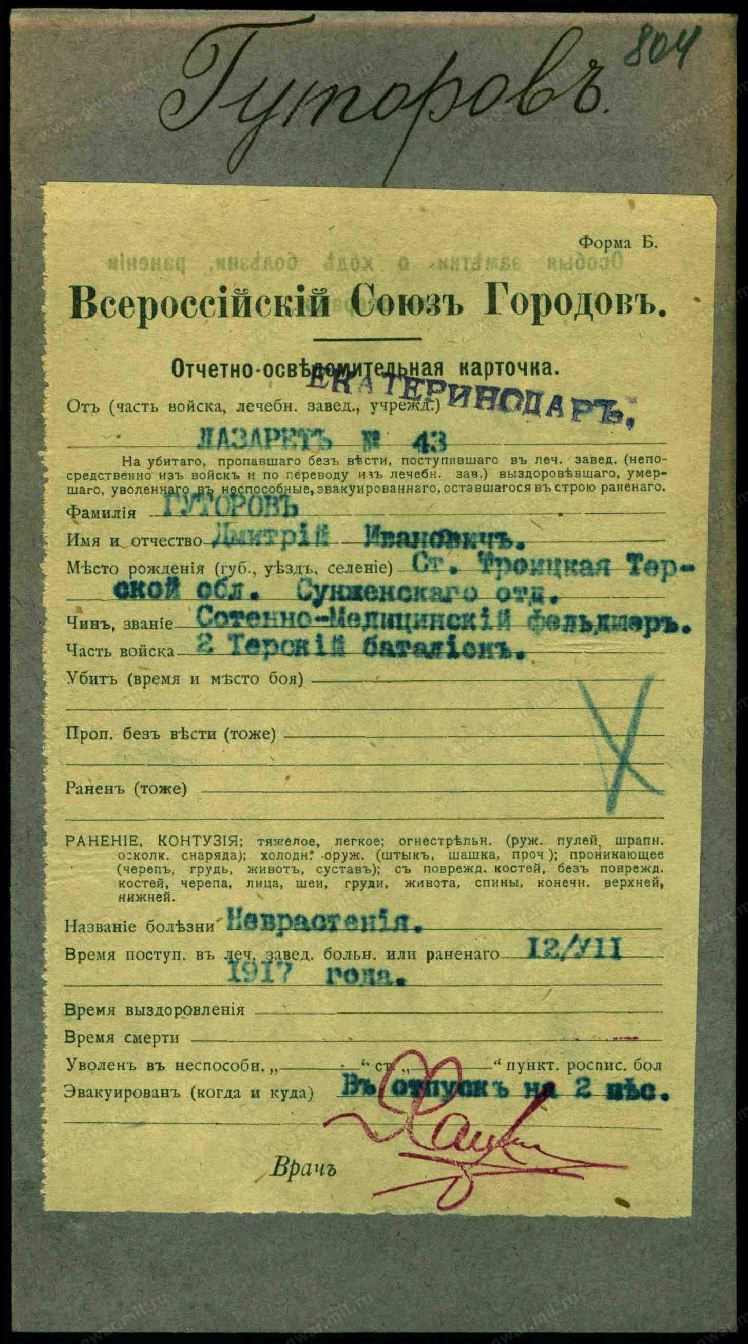 Фонд Картотека бюро учета потерь в Первой мировой войне (офицеров и солдат)