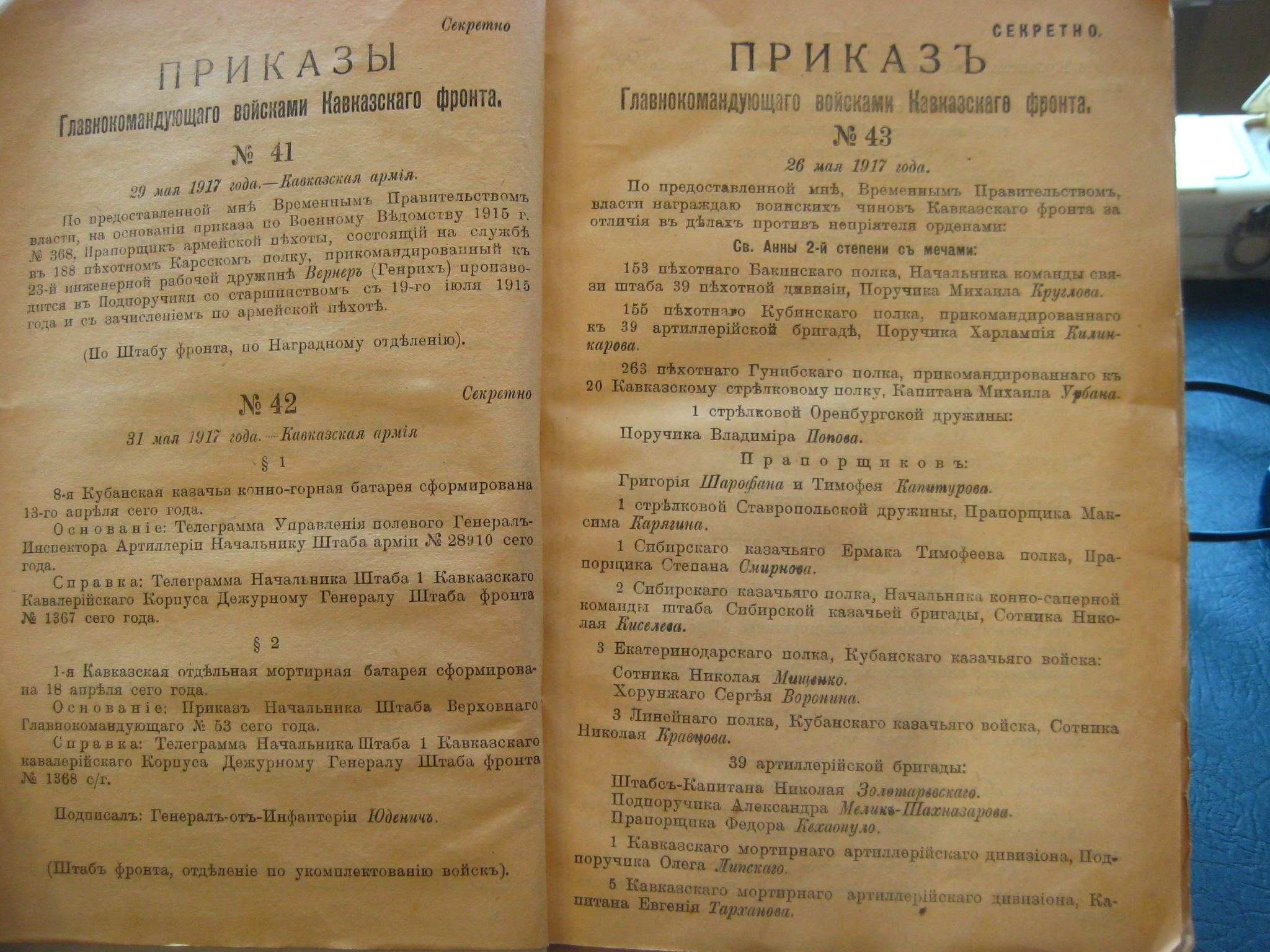 на премировкахъ состоявшихся въ апреле, мае и iюне месяцахъ 1914 года. Приказъ по ТКВ №295 от 4-го сентября 1914 года.